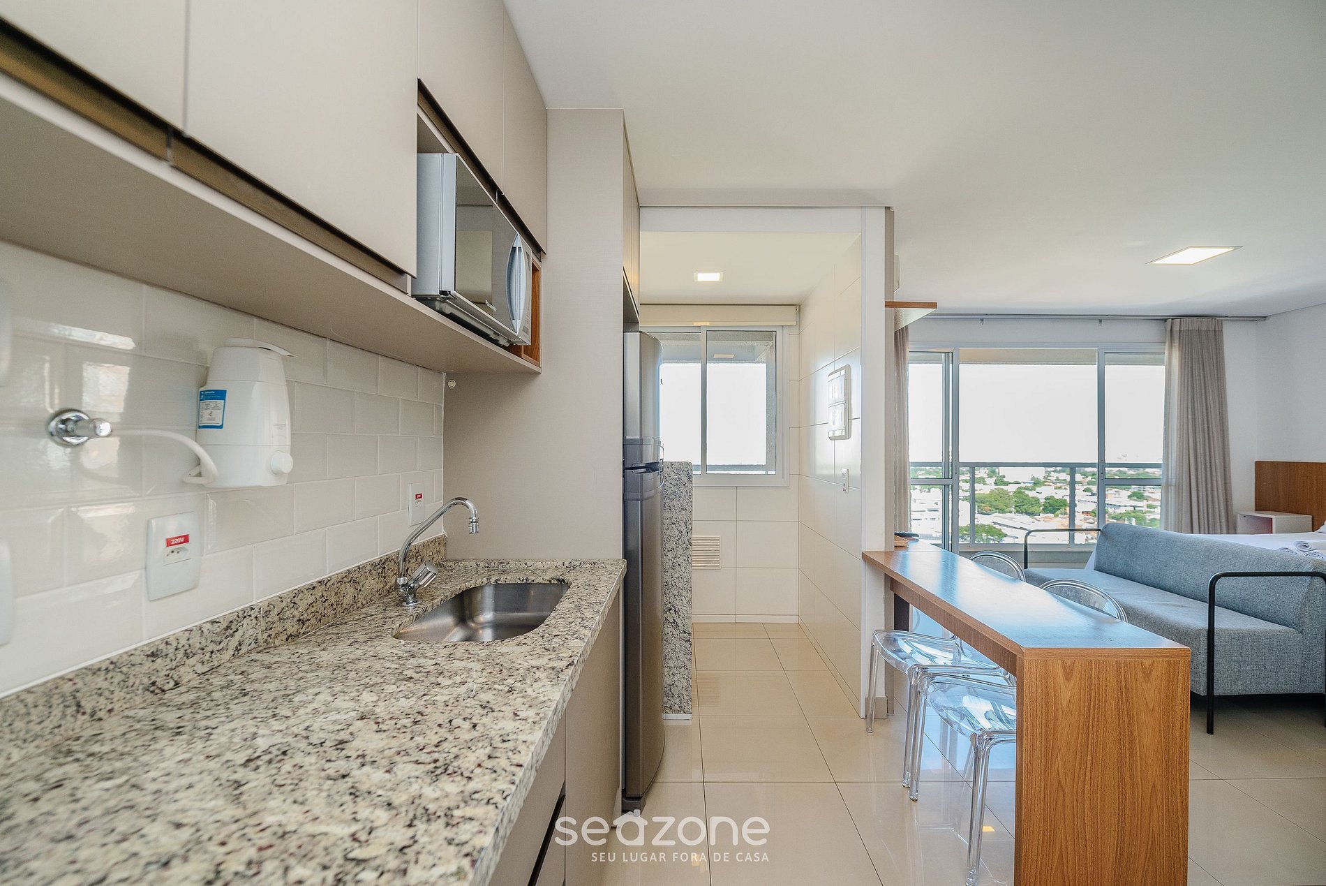 Tenha uma estadia completa neste flat moderno em Goiânia, Setor Bueno. Cozinha equipada, TV, Wi-Fi de alta velocidade e check-in sem chave e ar condicionado para você ter o máximo de conforto.