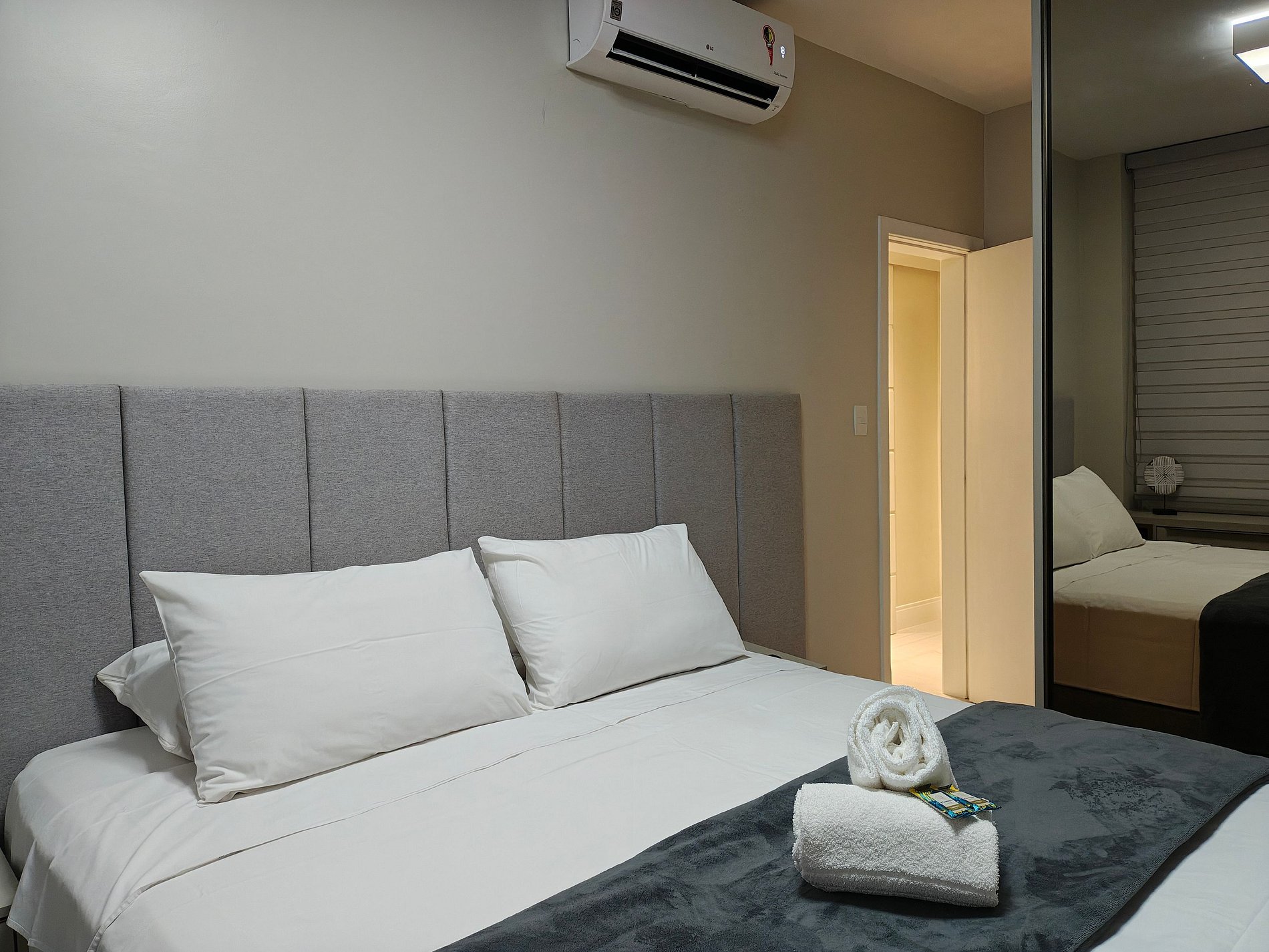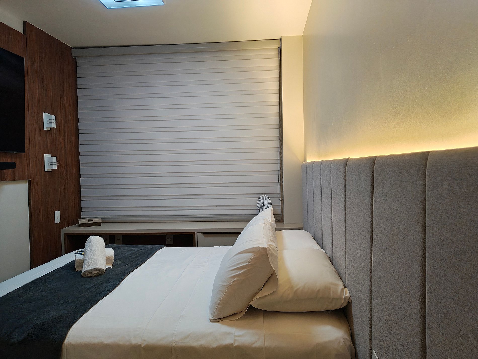 - 1 Suíte com cama queen, armário, smart TV e ar-condicionado;