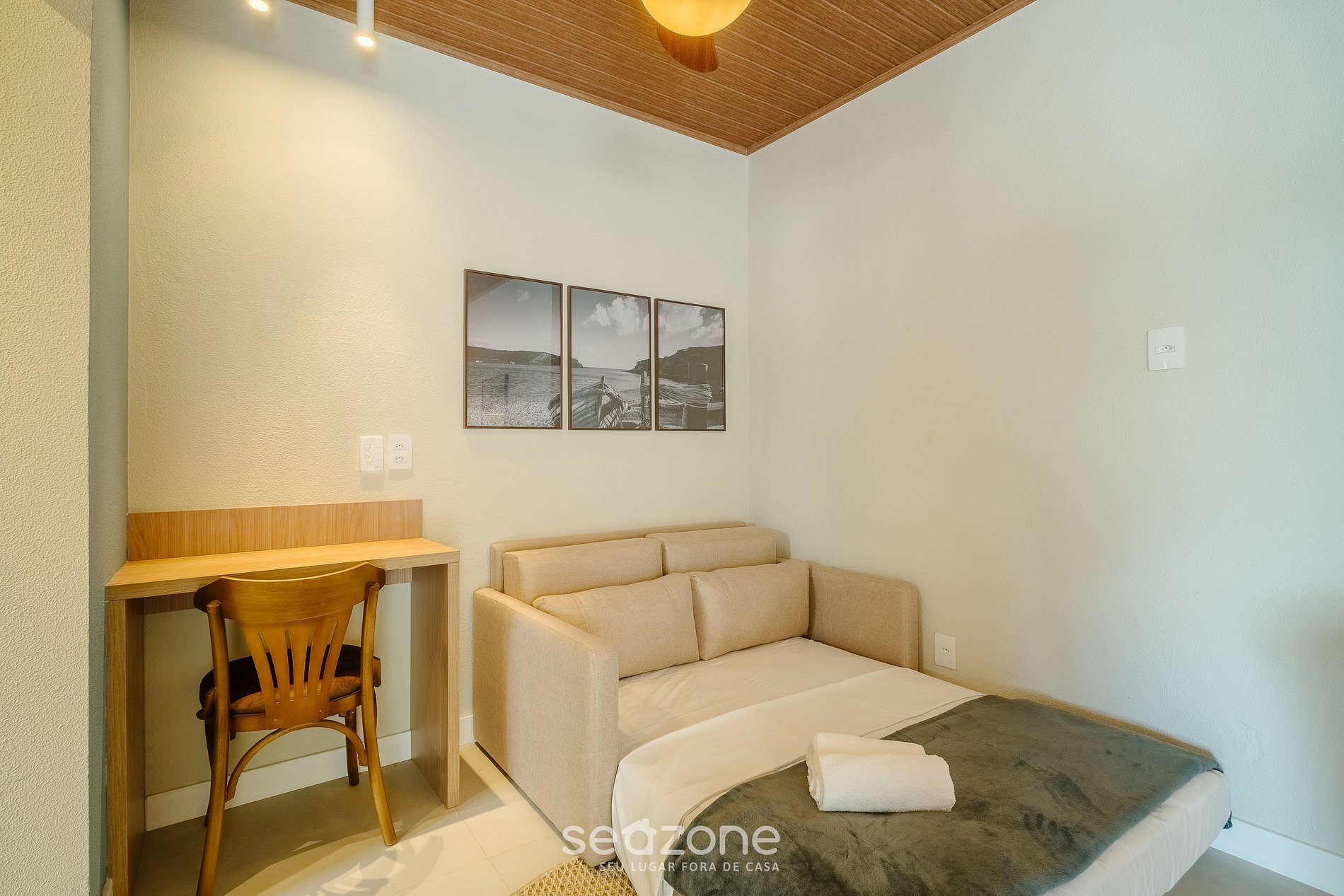 - Roupas de cama e banho de qualidade hoteleira (roupas de cama e toalhas extras são cobrados pela Seazone);