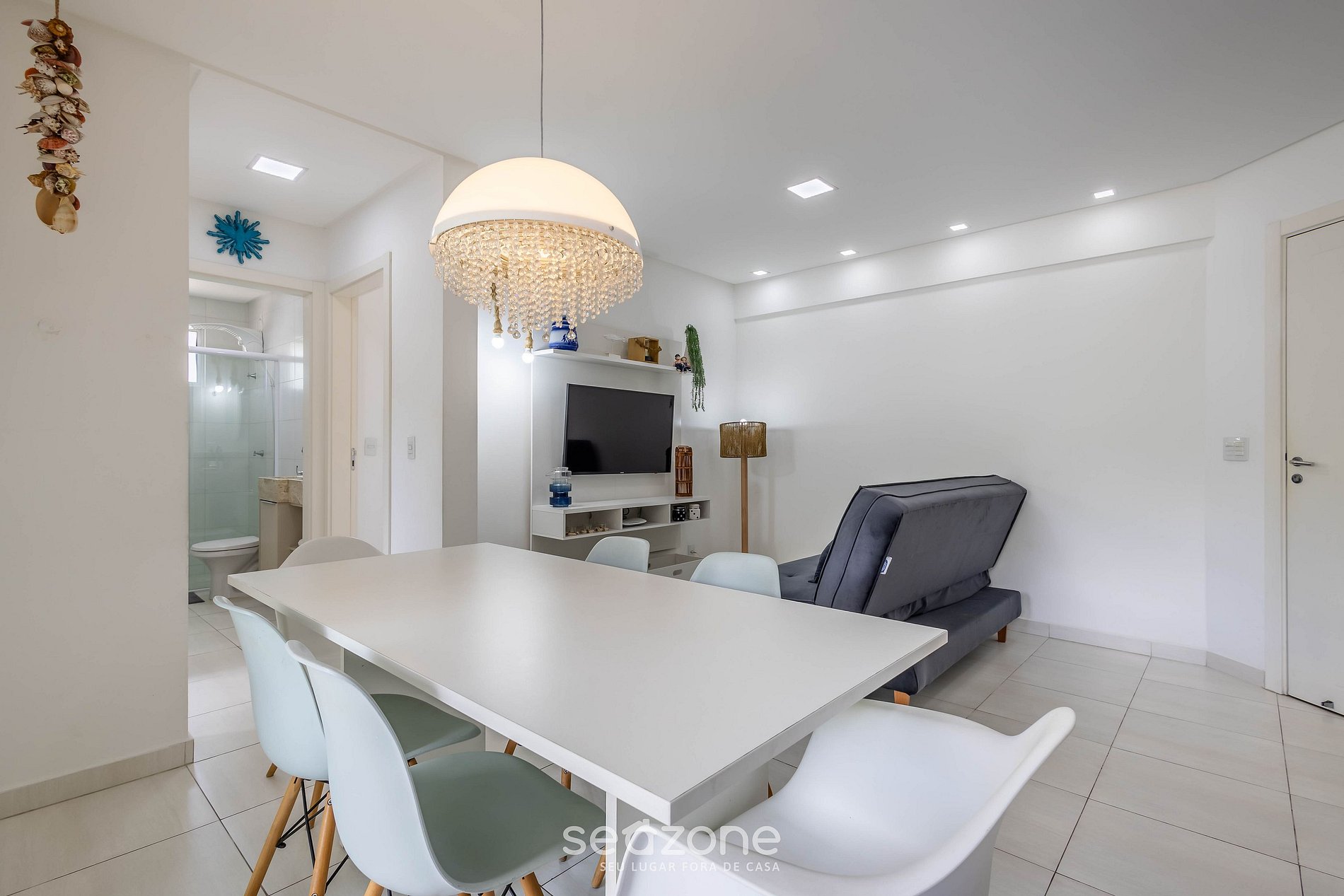 - Espaço para jantar com mesa e 6 cadeiras;