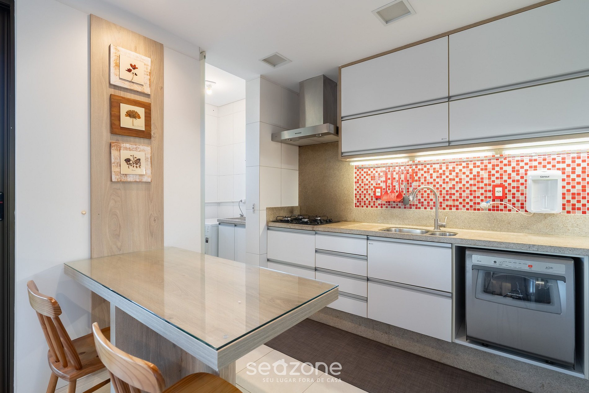 - Cozinha completa com geladeira, fogão cooktop (gás), forno elétrico, microondas, sanduicheira, cafeteira elétrica, Kit café (suporte para filtro, garrafa térmica), chaleira elétrica, liquidificador, taças de vinho, panelas, louças e utensílios;