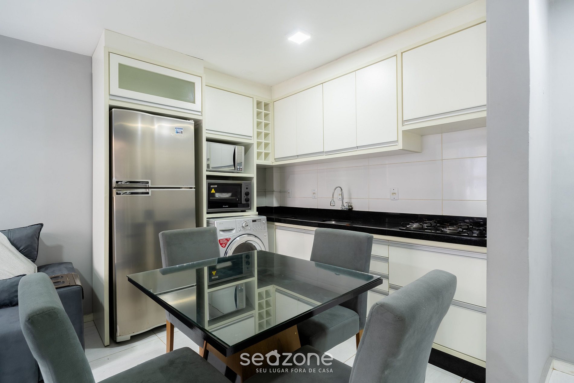 - Espaço para jantar com mesa e 4 cadeiras;