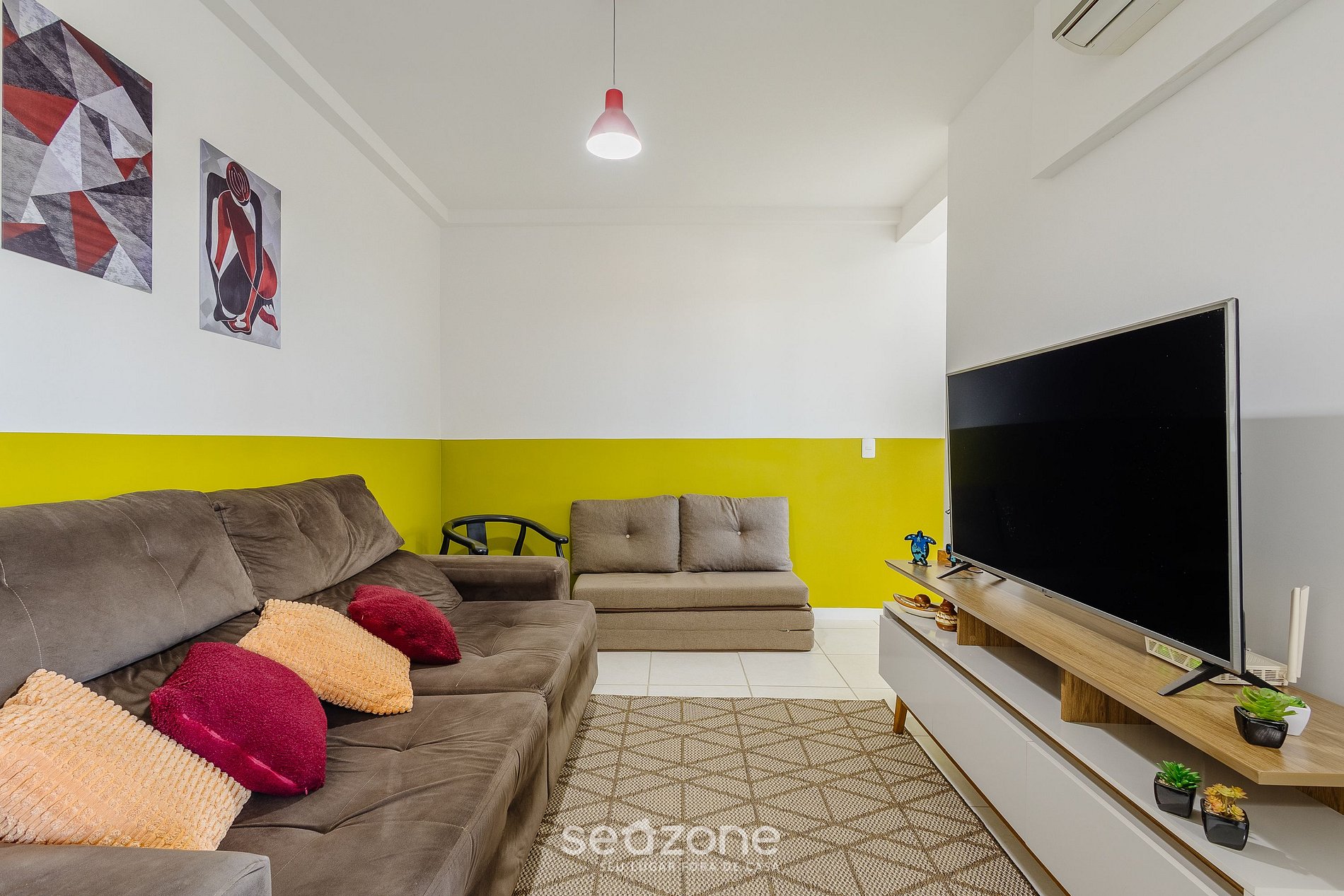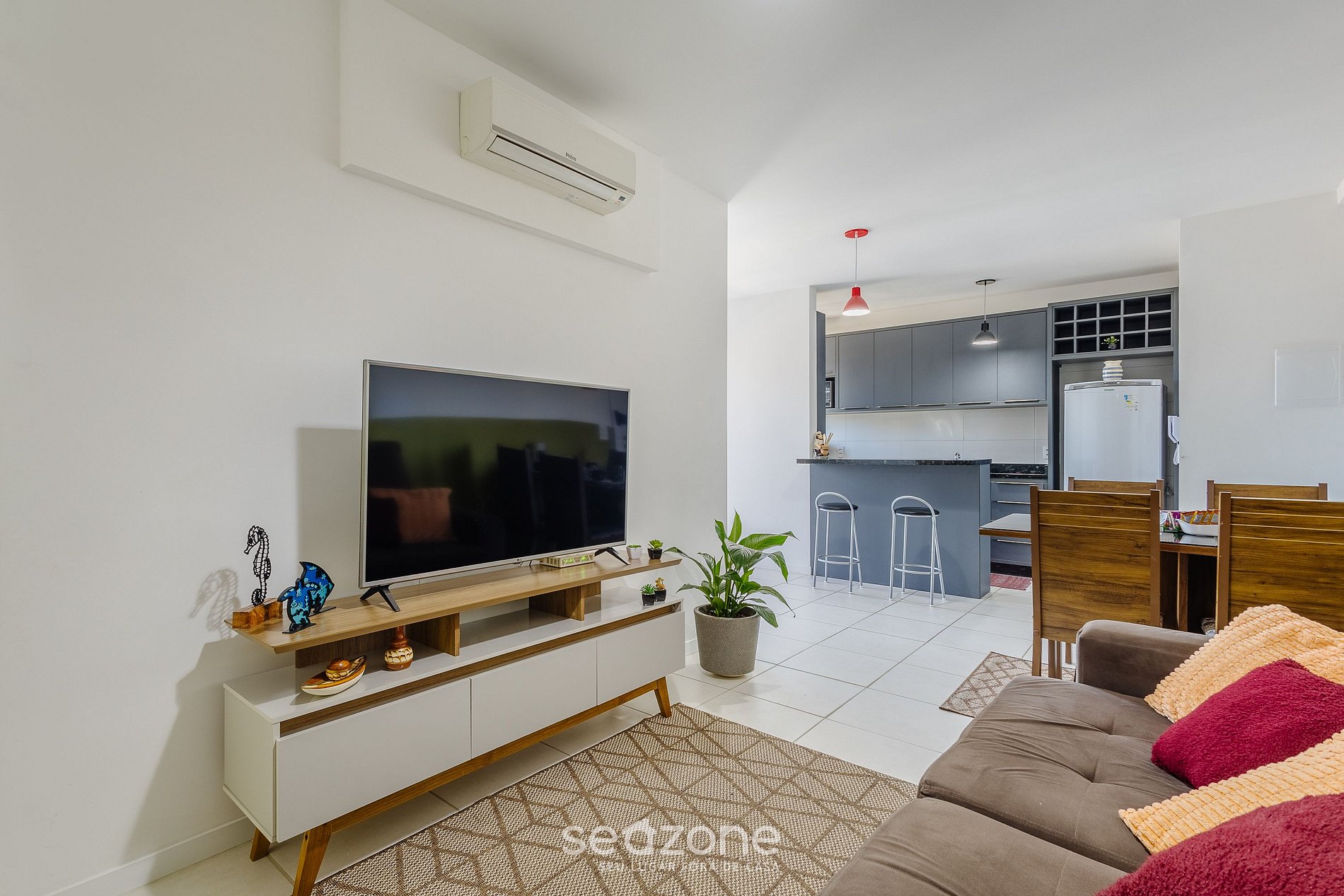 - Sala de estar com Sofá, ar-condicionado e Smart TV;