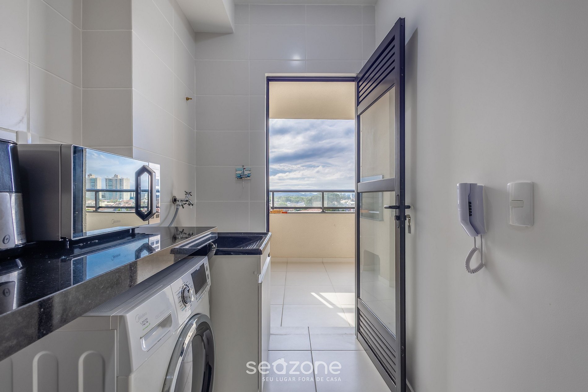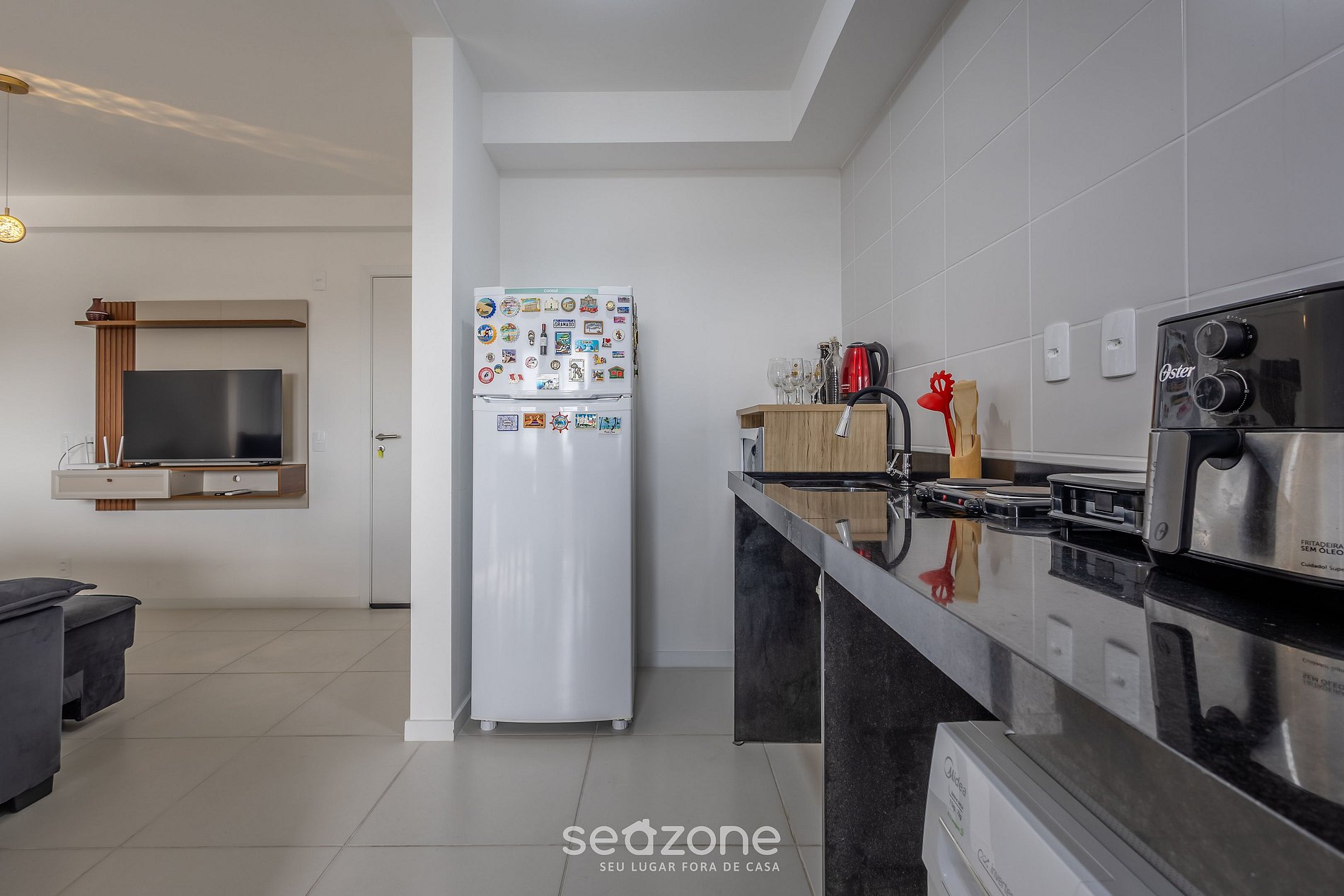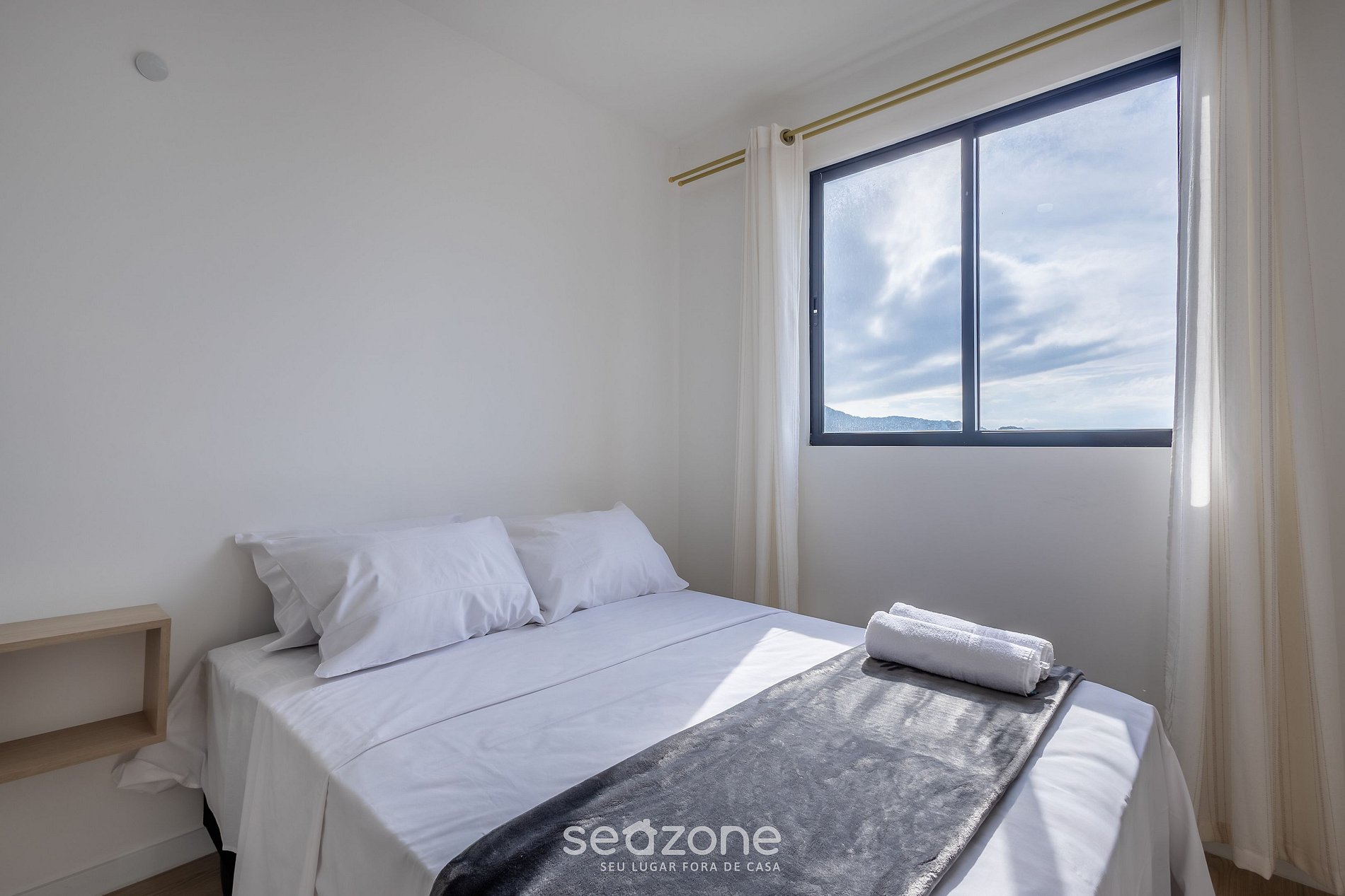 Este apto moderno oferece 2 quartos com cama de casal, sala integrada com Smart TV e ar-condicionado, cozinha completa e varanda com churrasqueira e vista para a cidade e o mar. As áreas comuns contam com piscina, academia e jacuzzi climatizada. Localização estratégica perto da Praia da Armação, mercados, restaurantes e do Beto Carrero.