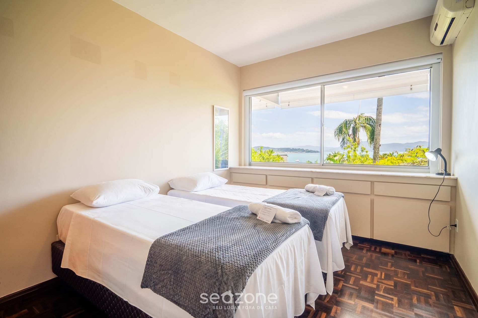 - Roupas de cama/banho e limpeza extras são solicitadas e pagas à parte, direto com a Seazone;