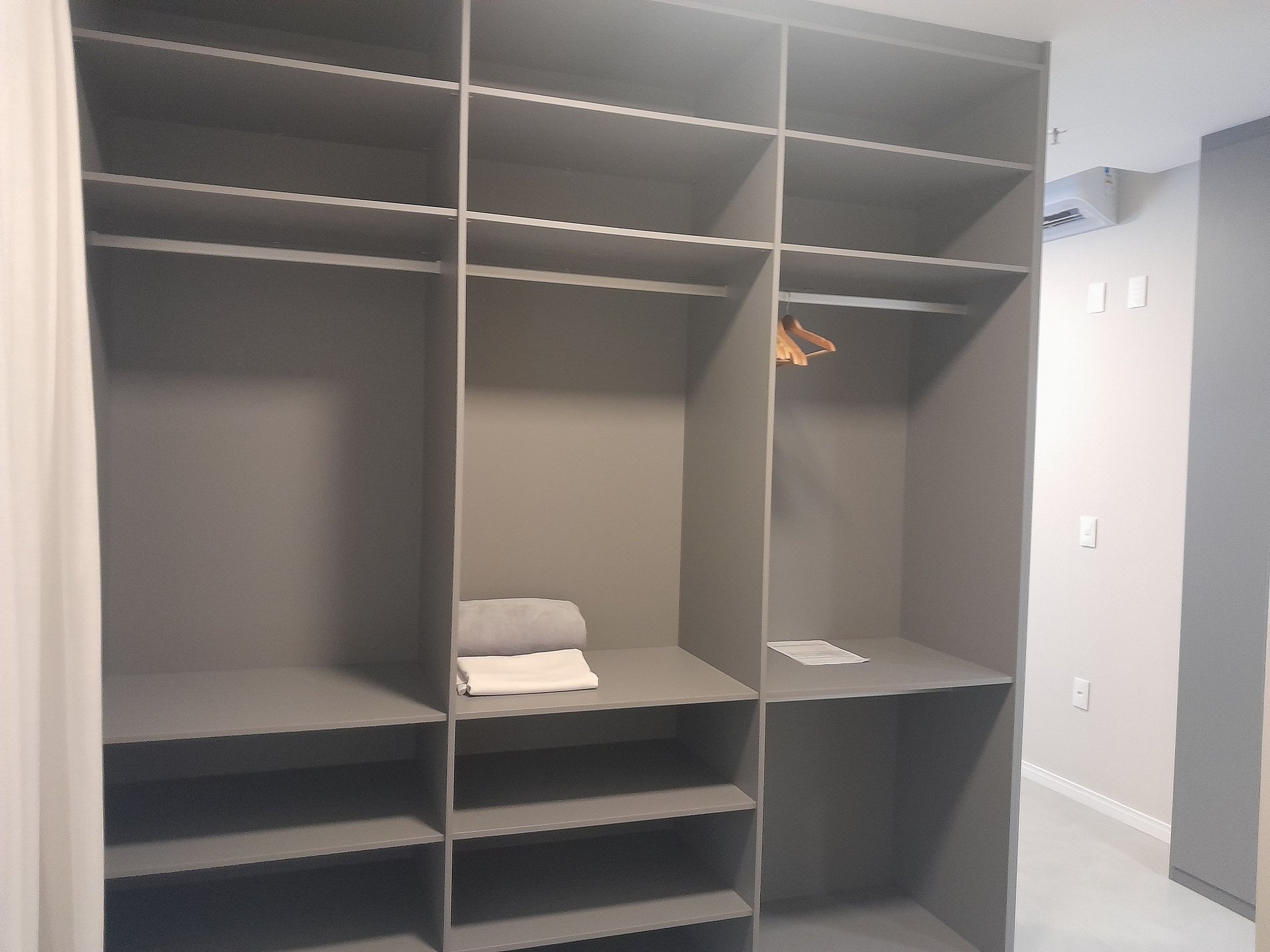 - Cama queen, armário, sofá, smart TV e ar-condicionado;
