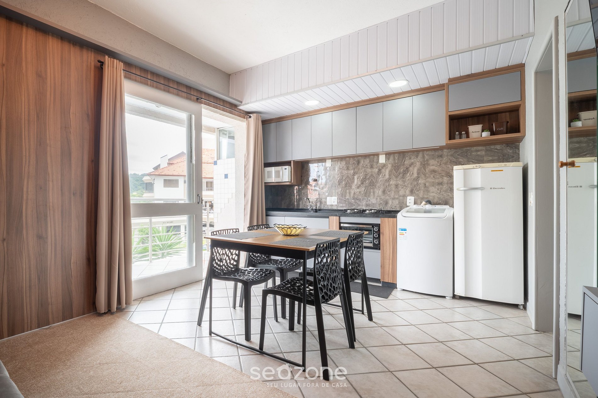 - Espaço para jantar com mesa e 4 cadeiras;