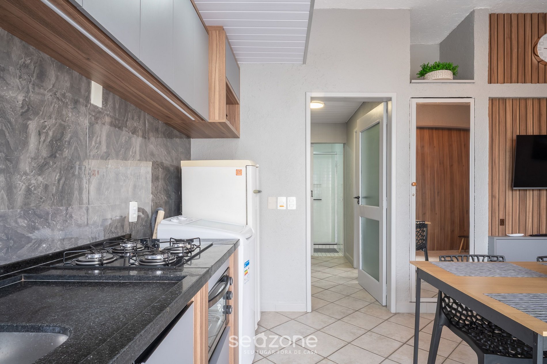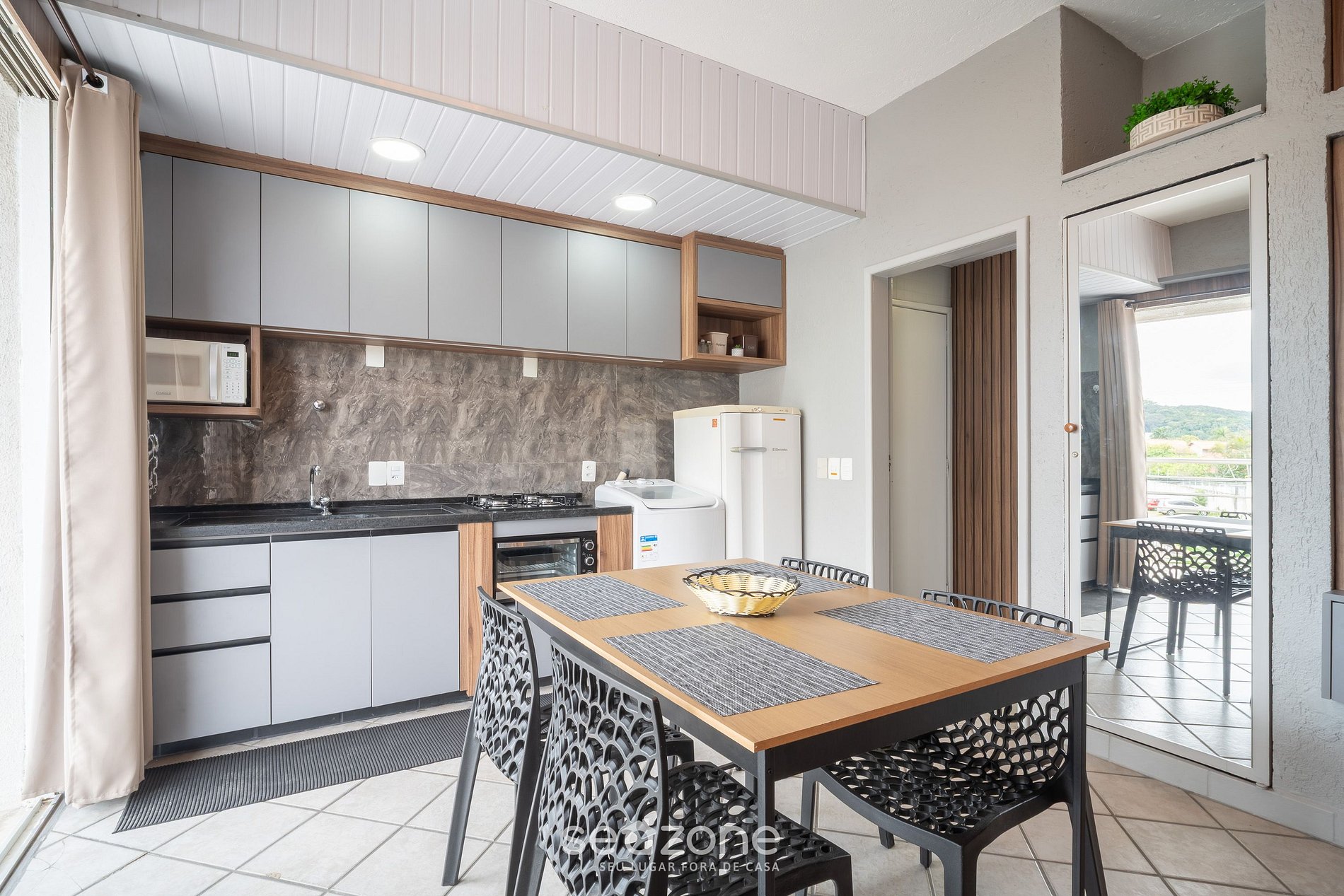 - Espaço para jantar com mesa e 4 cadeiras;