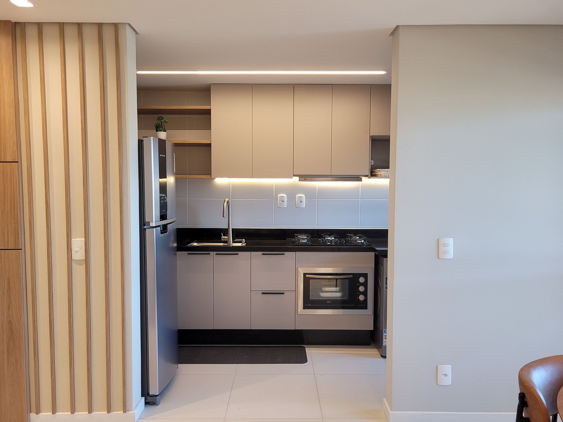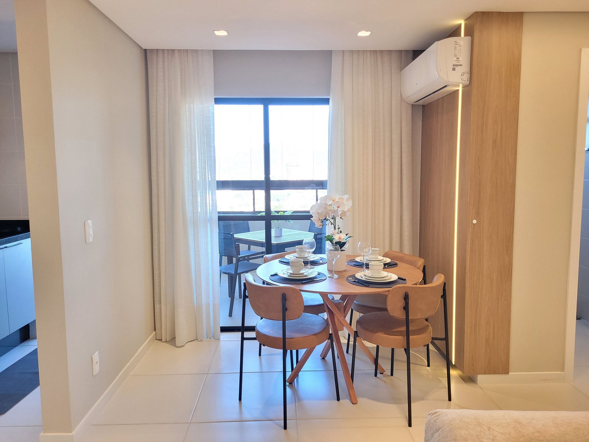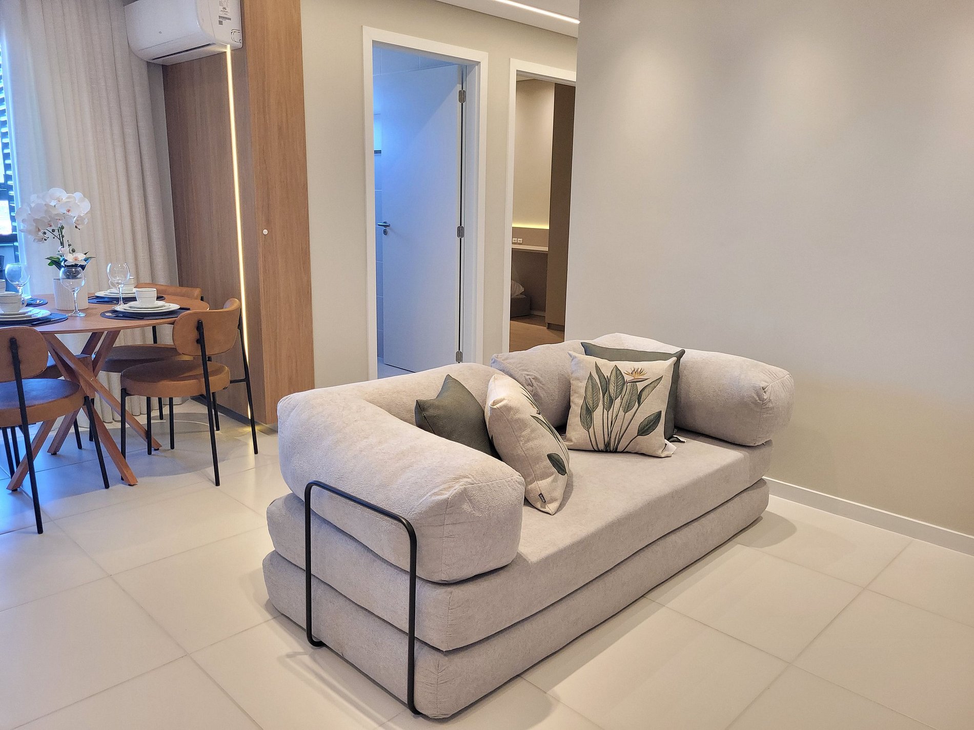 Este imóvel foi planejado para famílias. Enquanto os pequenos se divertem no parquinho infantil ou na piscina, você relaxa na sacada e vista para o mar. O apartamento é totalmente climatizado e conta com uma cozinha completa para sua praticidade. A curta caminhada de 400m até a praia torna tudo mais fácil.
