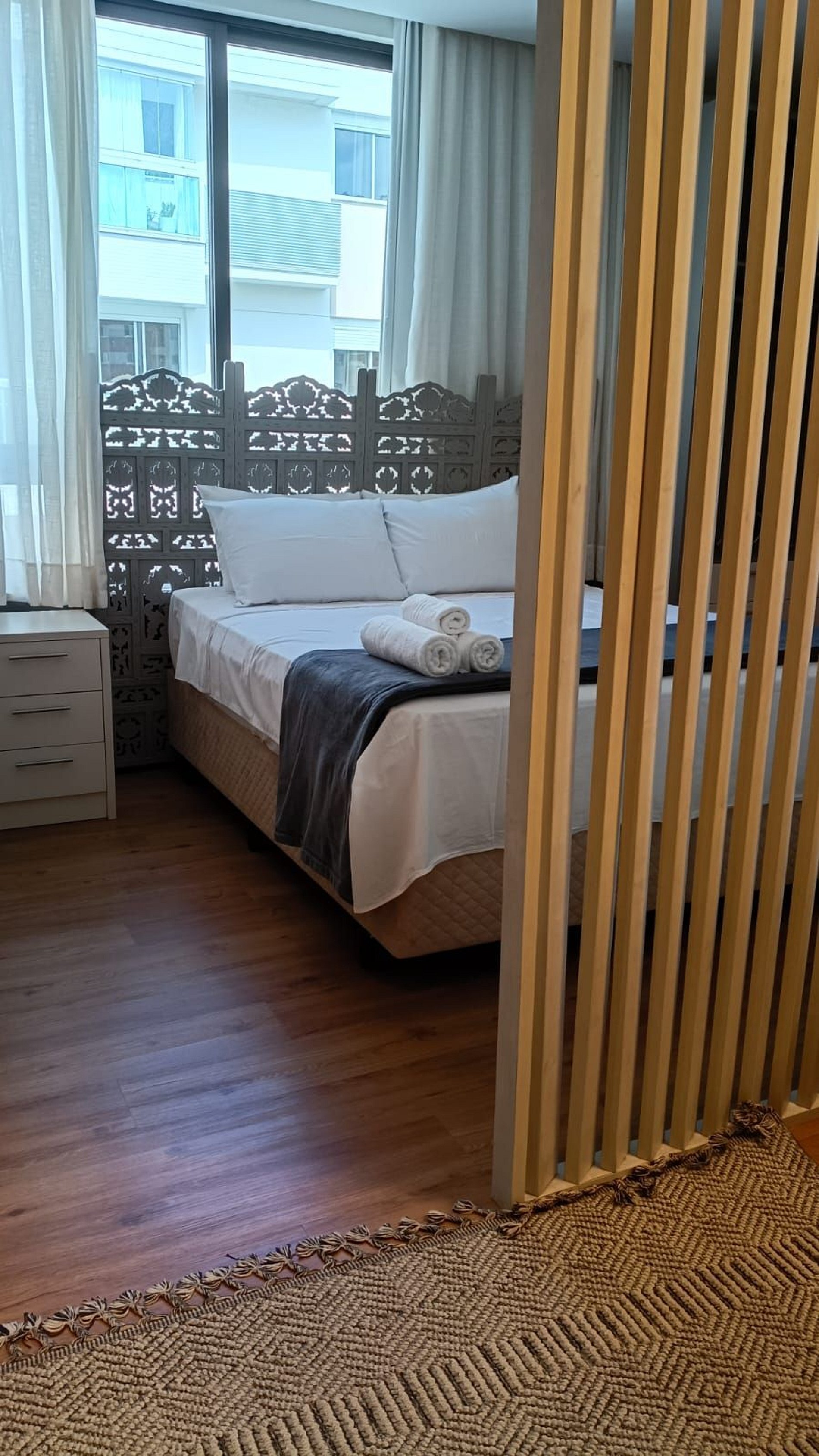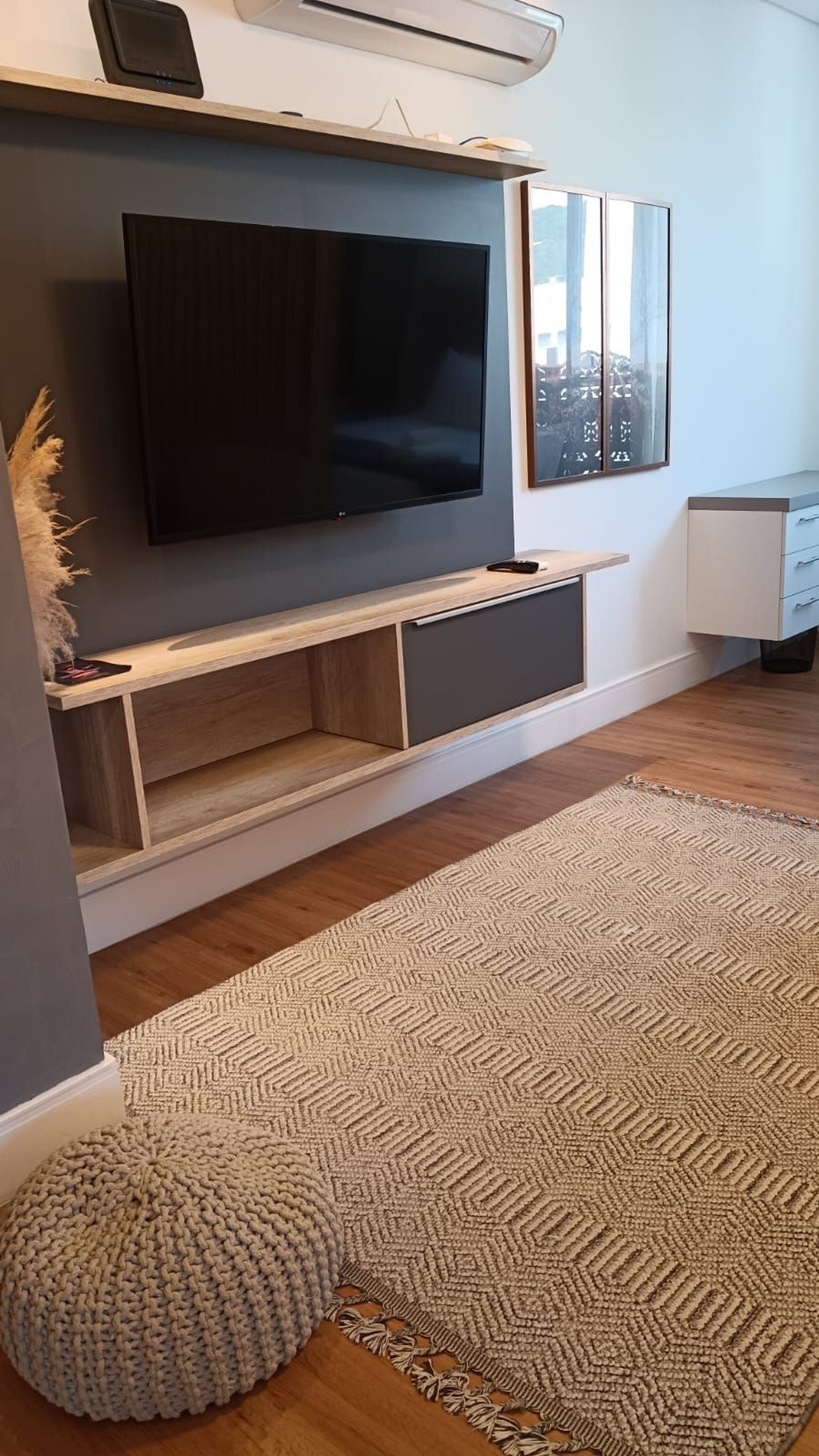 - Cama queen, armário, arara para roupas, espaço com sofá, Smart Tv e ar-condicionado;