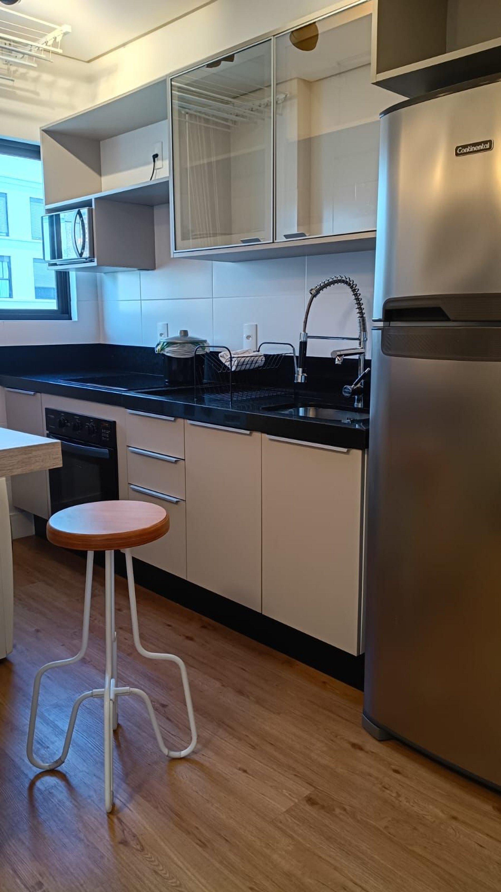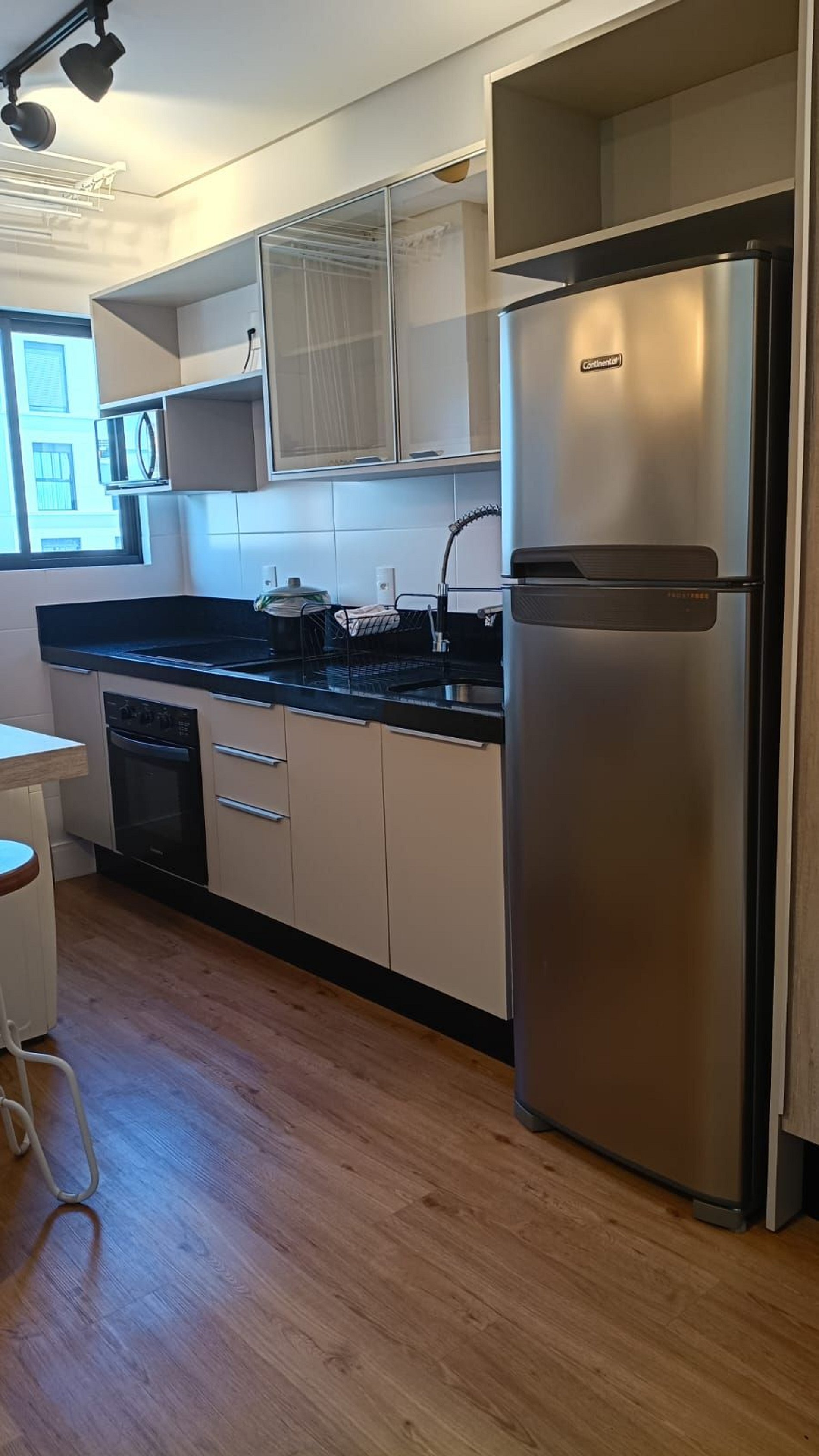 - Cozinha completa com geladeira, fogão cooktop por indução, forno elétrico, microondas, sanduicheira, cafeteira elétrica, liquidificador, taças de vinho, panelas, louças e utensílios;