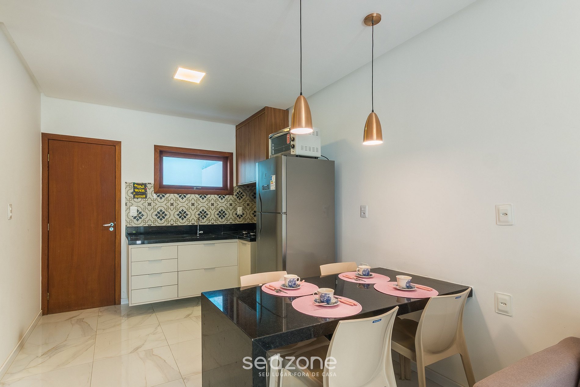 - Espaço para jantar com mesa e cadeiras;