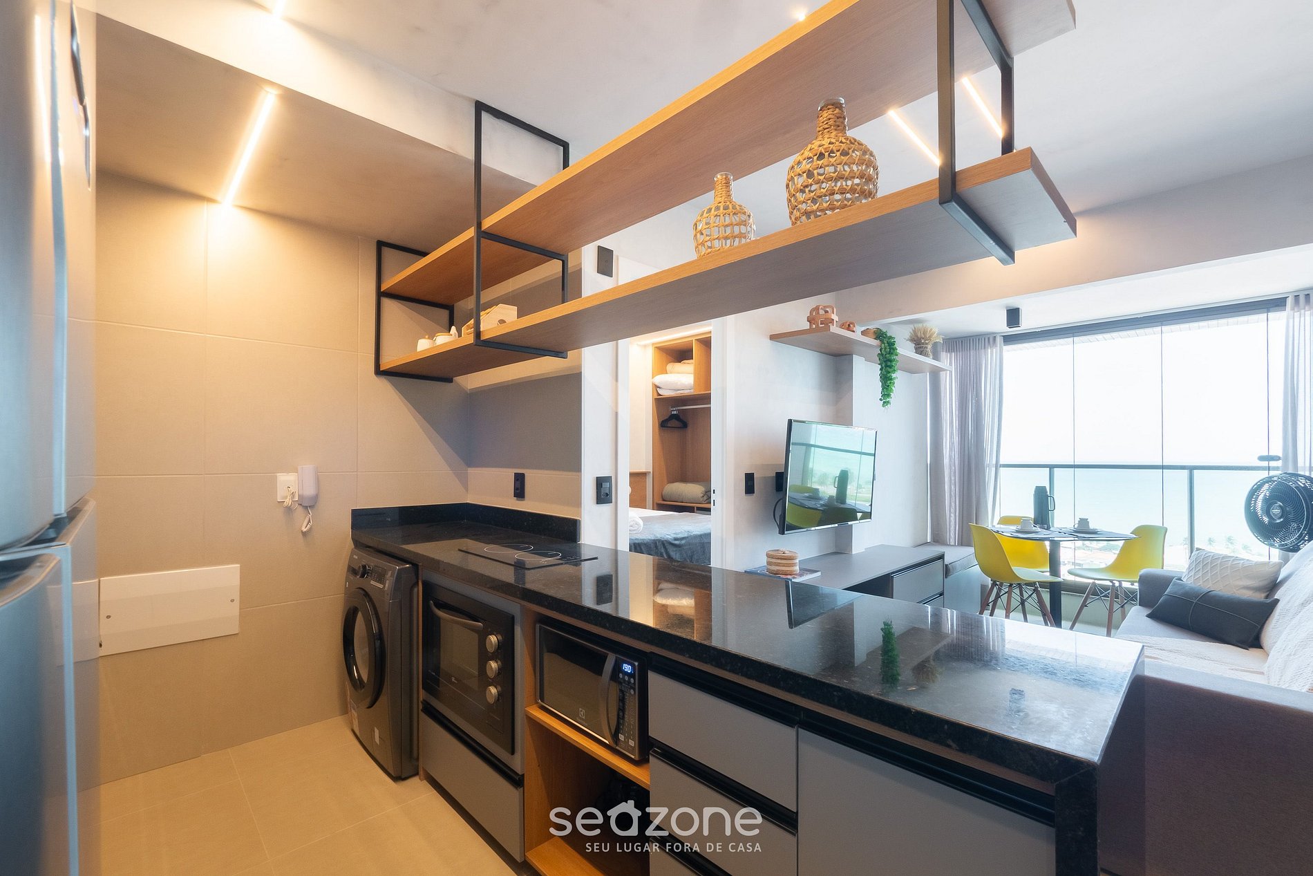 Acomode-se em um ambiente moderno, a poucos metros da praia. Com quarto confortável, ar-condicionado e Smart TV, e sala com sofá e TV. A cozinha equipada oferece praticidade. No condomínio, aproveite a piscina no rooftop com vista deslumbrante, academia e a localização privilegiada, próxima a restaurantes e mercados.