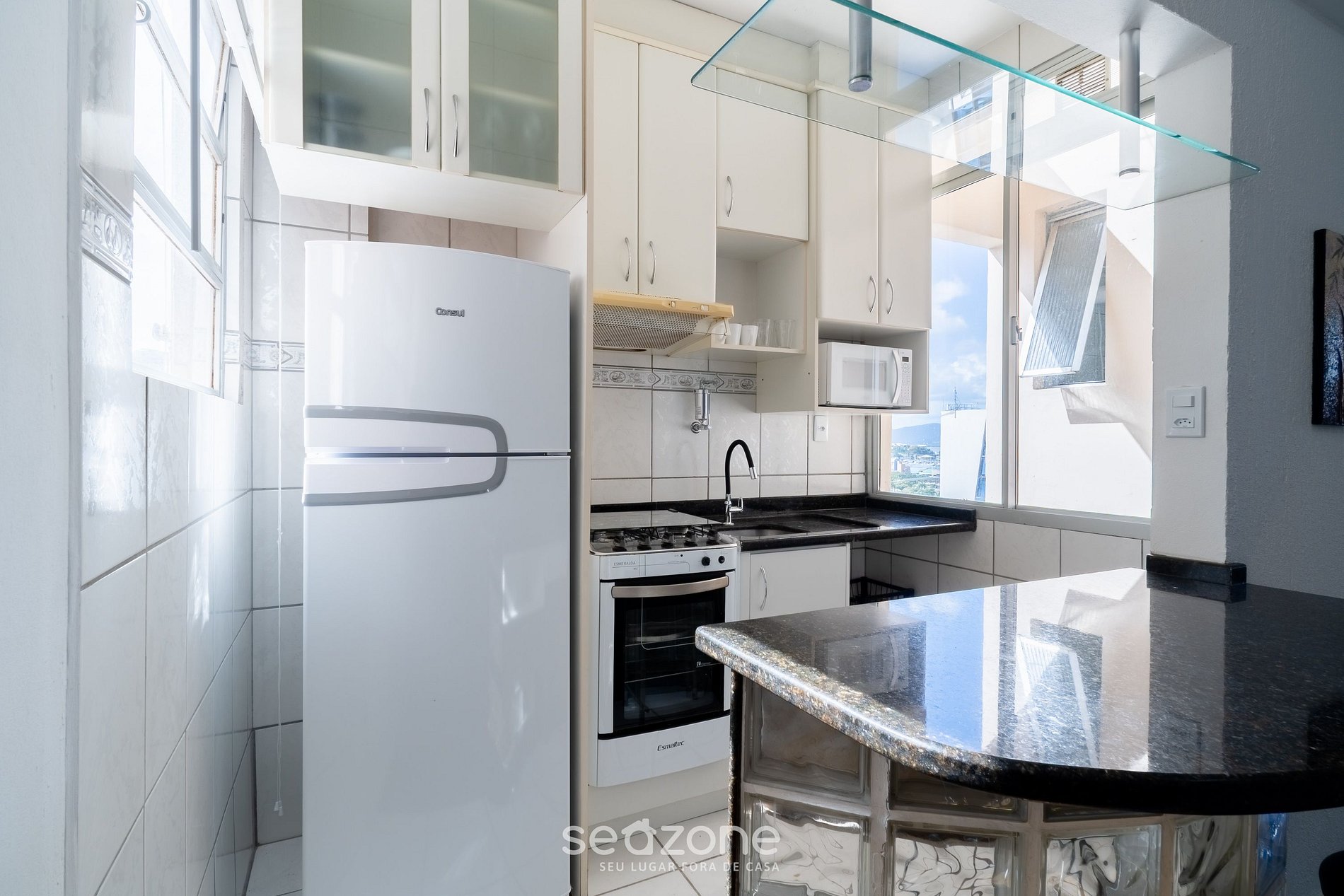 - Cozinha completa com geladeira, fogão e forno a gás, micro-ondas, sanduicheira, Kit café (suporte para filtro, garrafa térmica), chaleira elétrica, liquidificador, taças de vinho, panelas, louças e utensílios;