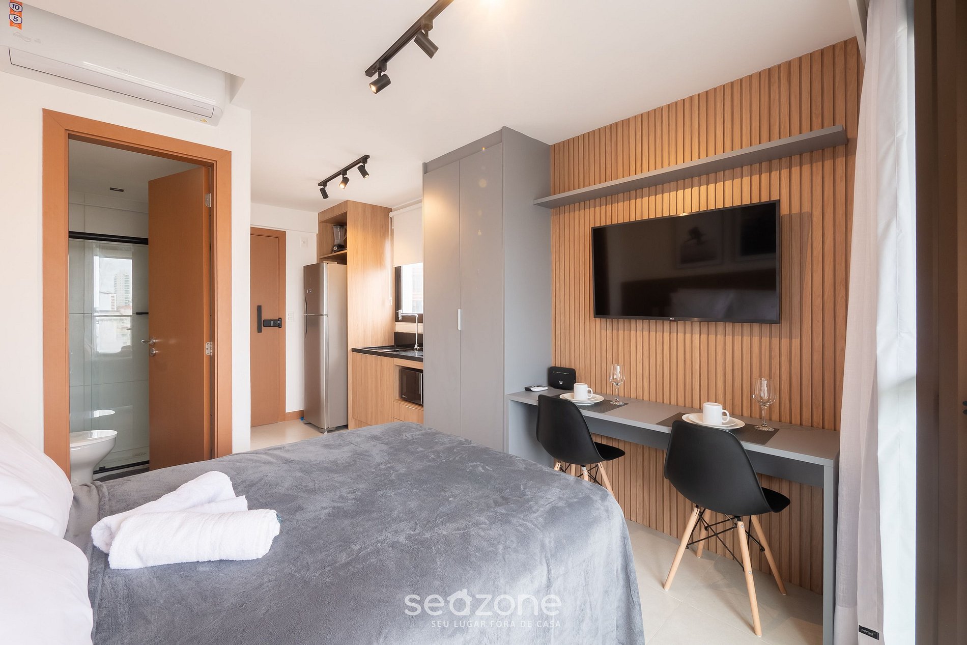 Este studio climatizado oferece todo o conforto que você precisa, com cama de casal, smart TV, cozinha equipada e uma varanda com vista deslumbrante. Aproveite a piscina na cobertura, a academia e o coworking nas áreas comuns. Localizado a apenas 500m da praia, você estará no centro das melhores atrações de Salvador, com fácil acesso a restaurantes, lojas e entretenimento.