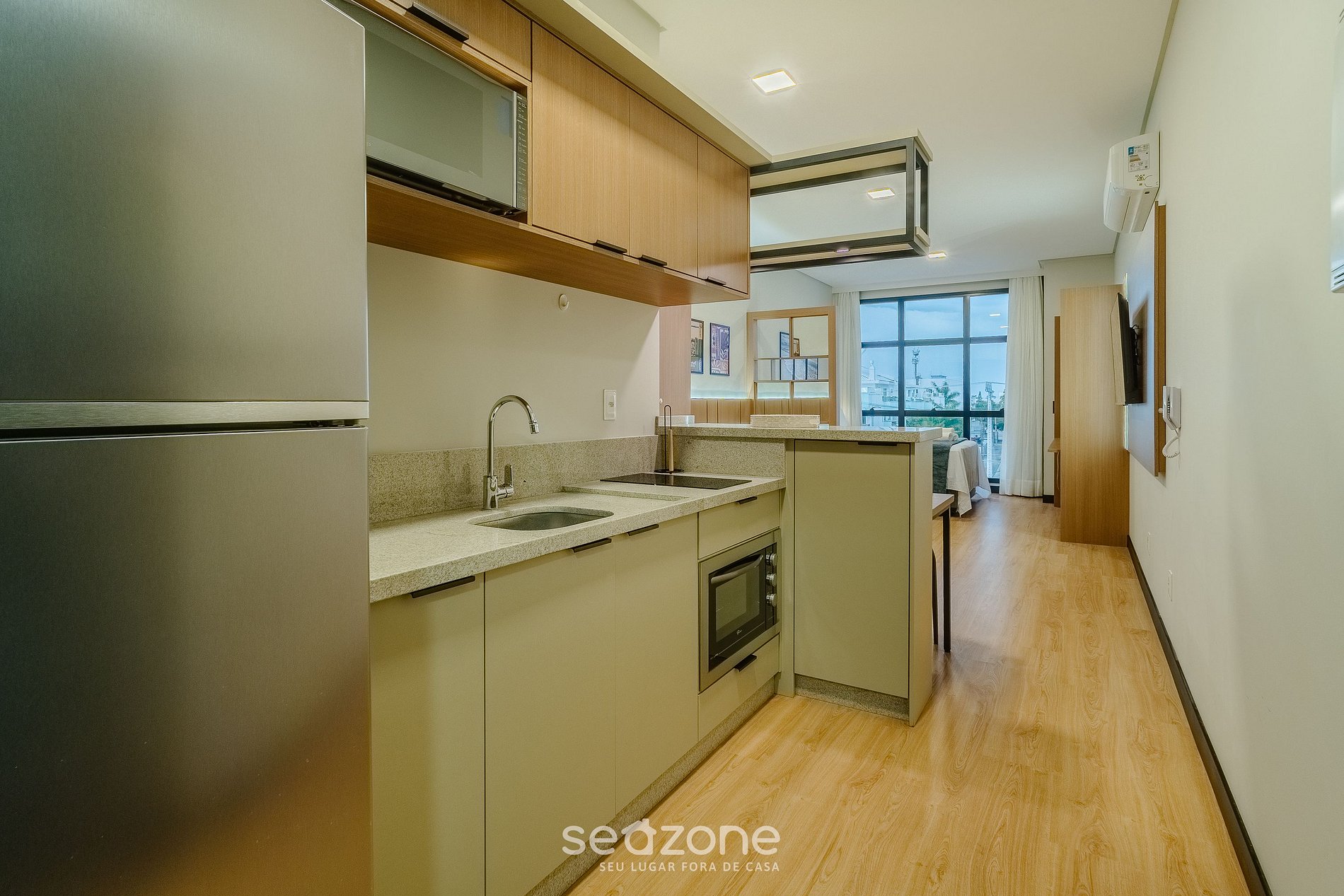 Aproveite o melhor de Florianópolis neste estúdio a 550m da Praia dos Ingleses. Após um dia de sol, relaxe com o conforto de ar-condicionado, Wi-Fi e Smart TV. A cozinha completa e a cama queen garantem uma estadia prática. As comodidades do condomínio, como piscina, churrasqueira, espaço para coworking e academia, elevam sua experiência.