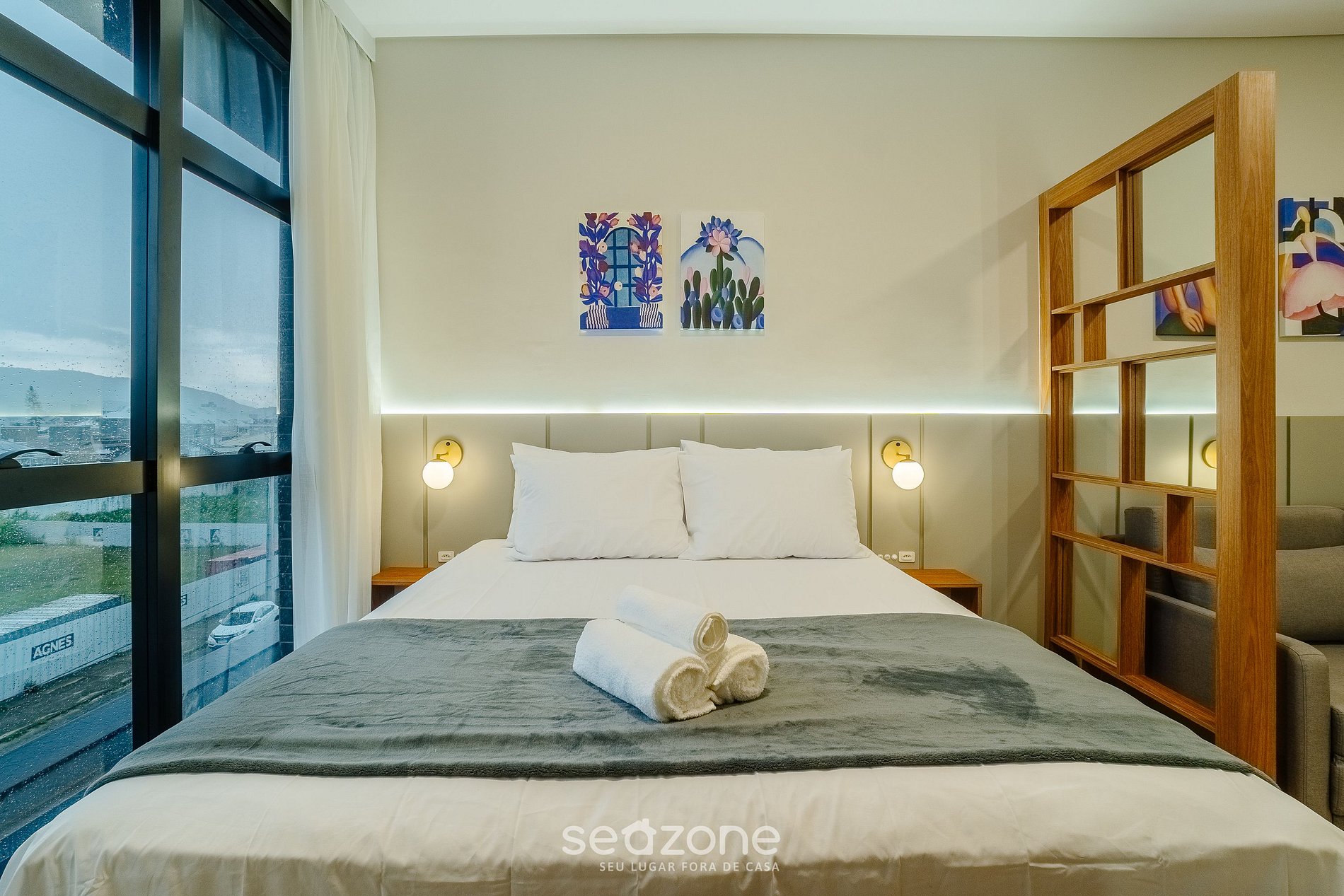 - Roupas de cama e banho de qualidade hoteleira (roupas de cama e toalhas extras são cobrados pela Seazone);