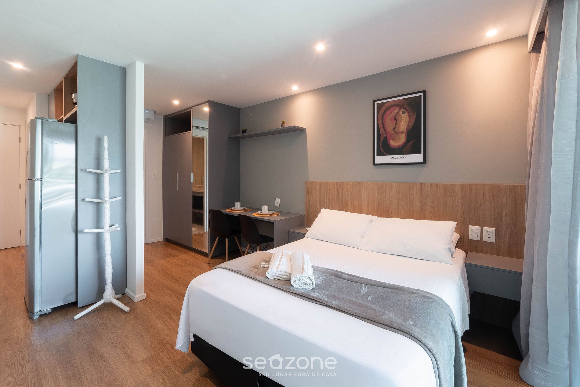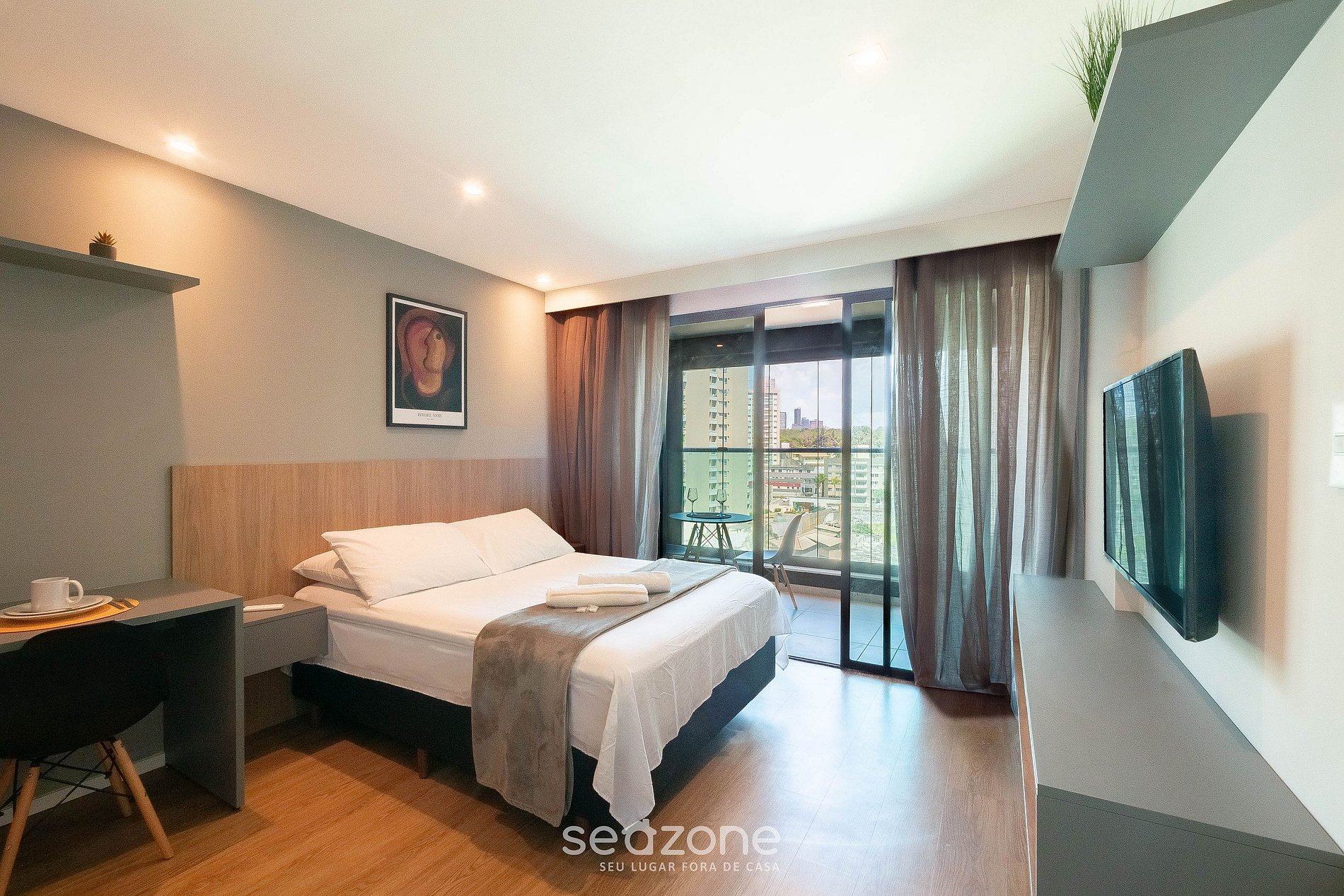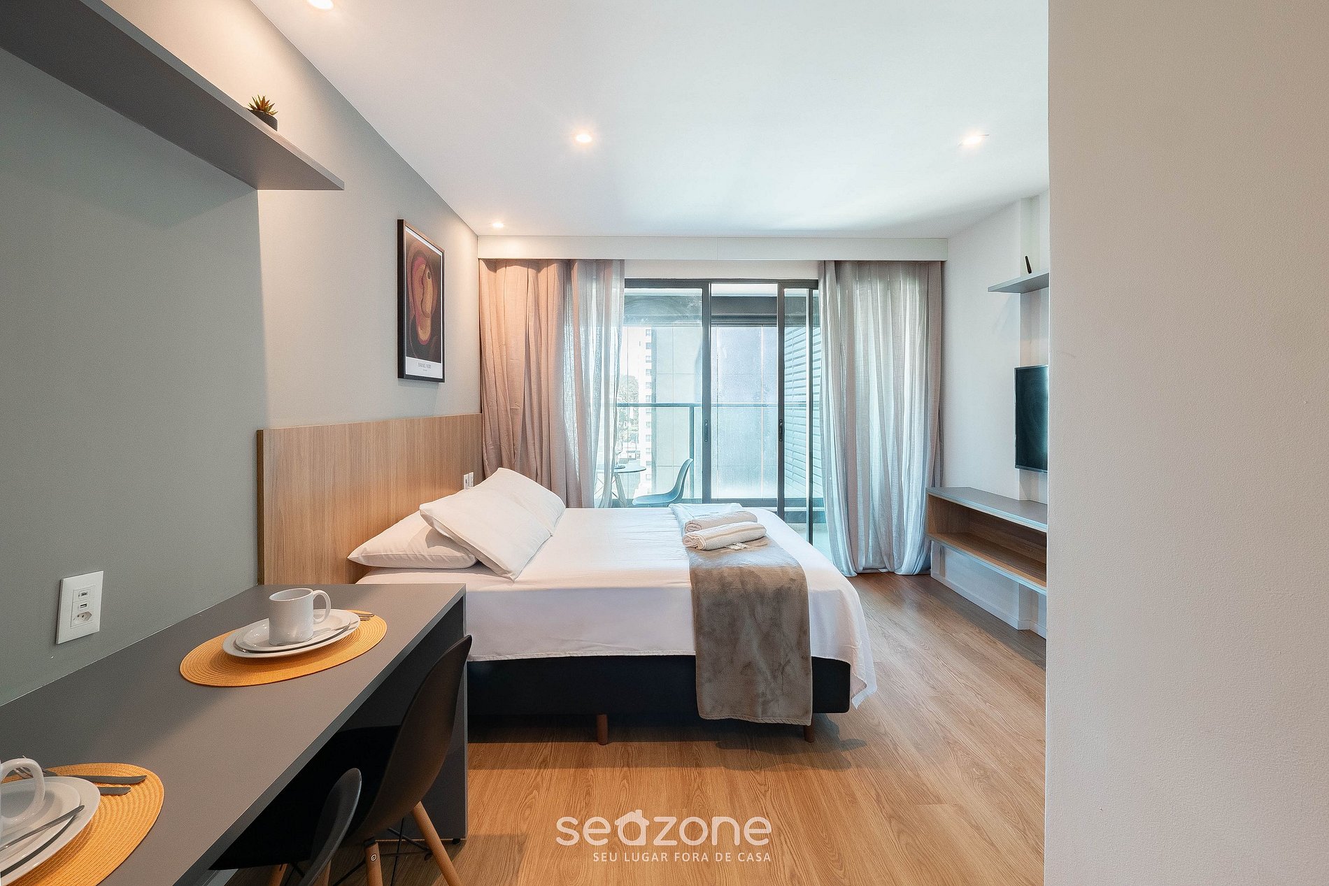 - Roupas de cama e banho de qualidade hoteleira (roupas de cama e toalhas extras são cobrados pela Seazone);