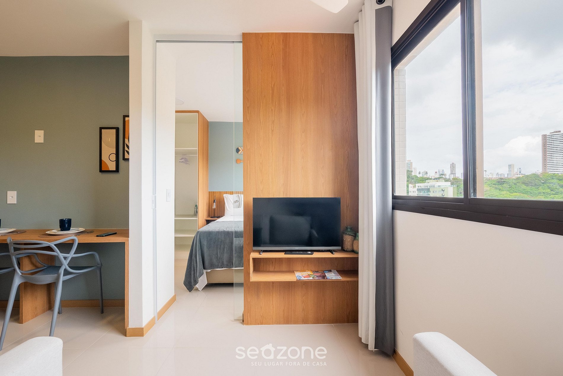 O apto reúne conforto em cada detalhe: climatização, Smart TV, cozinha completa, cama de casal e área de jantar integrada. O prédio oferece academia, churrasqueira, coworking e mais. A apenas 290m da praia e cercado por cafés, mercados, restaurantes e atrações da região.