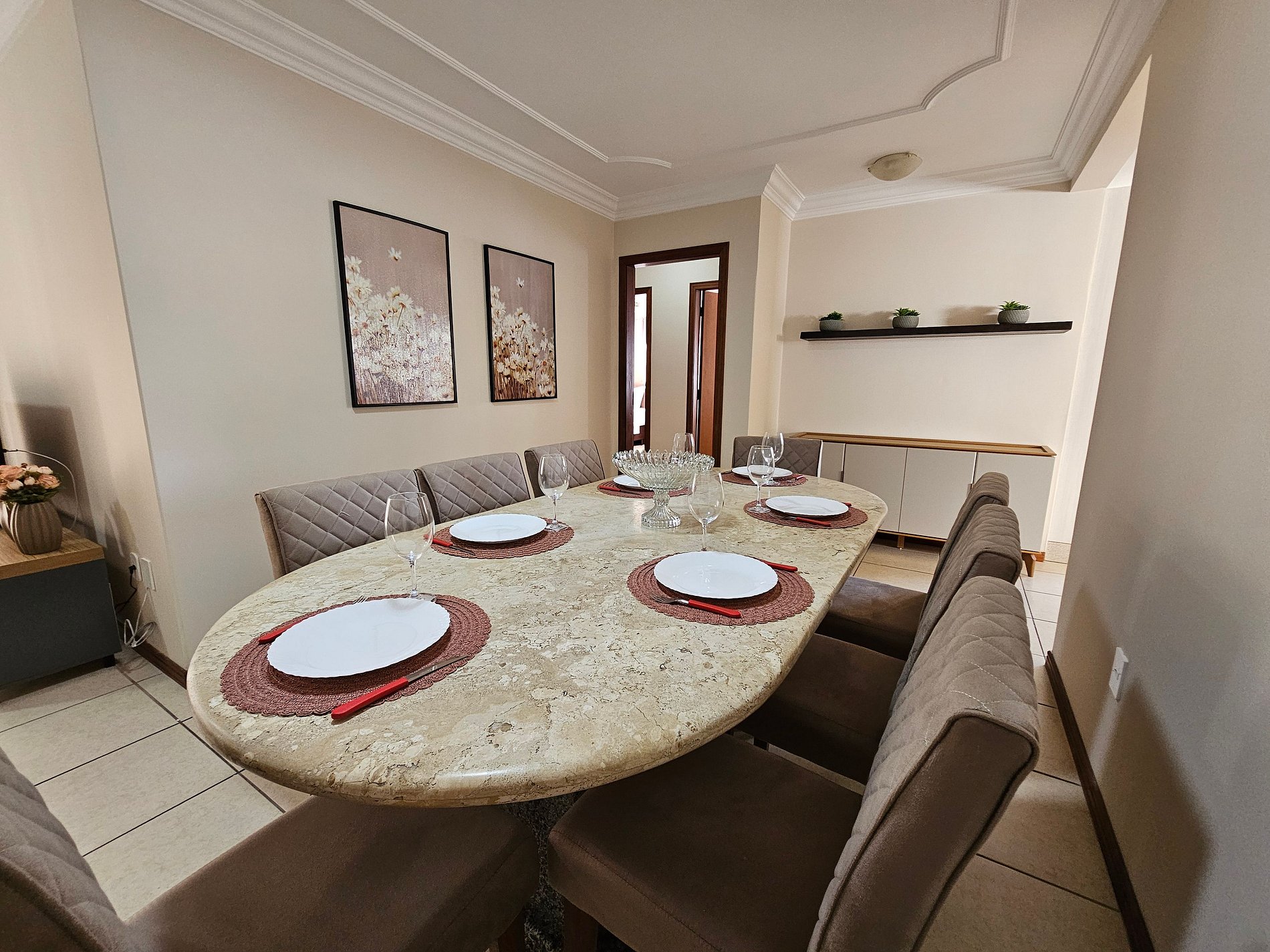 Este apartamento quadra mar em Balneário Camboriú é a definição de estadia premium. Oferece 4 quartos e uma sala espaçosa com Smart TV para o seu entretenimento. A cozinha completa garante autonomia. O lazer é exclusivo: desfrute da varanda com churrasqueira, perfeita para confraternizações. Além de estar a poucos passos da Roda Gigante e da Praia Central, a localização é simplesmente incomparável.