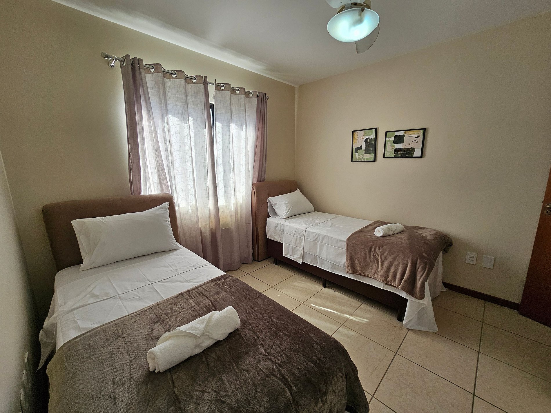 - 1 Suíte com 2 camas de solteiro, armário e ventilador de teto;