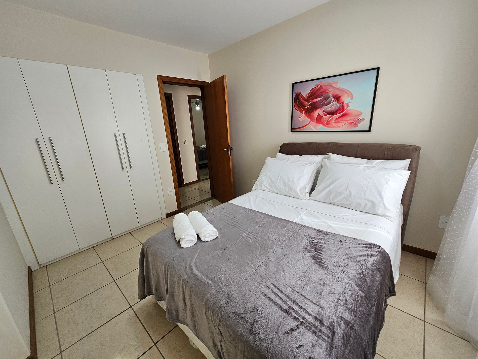 - 1 Suíte com cama de casal, armário e ar-condicionado;