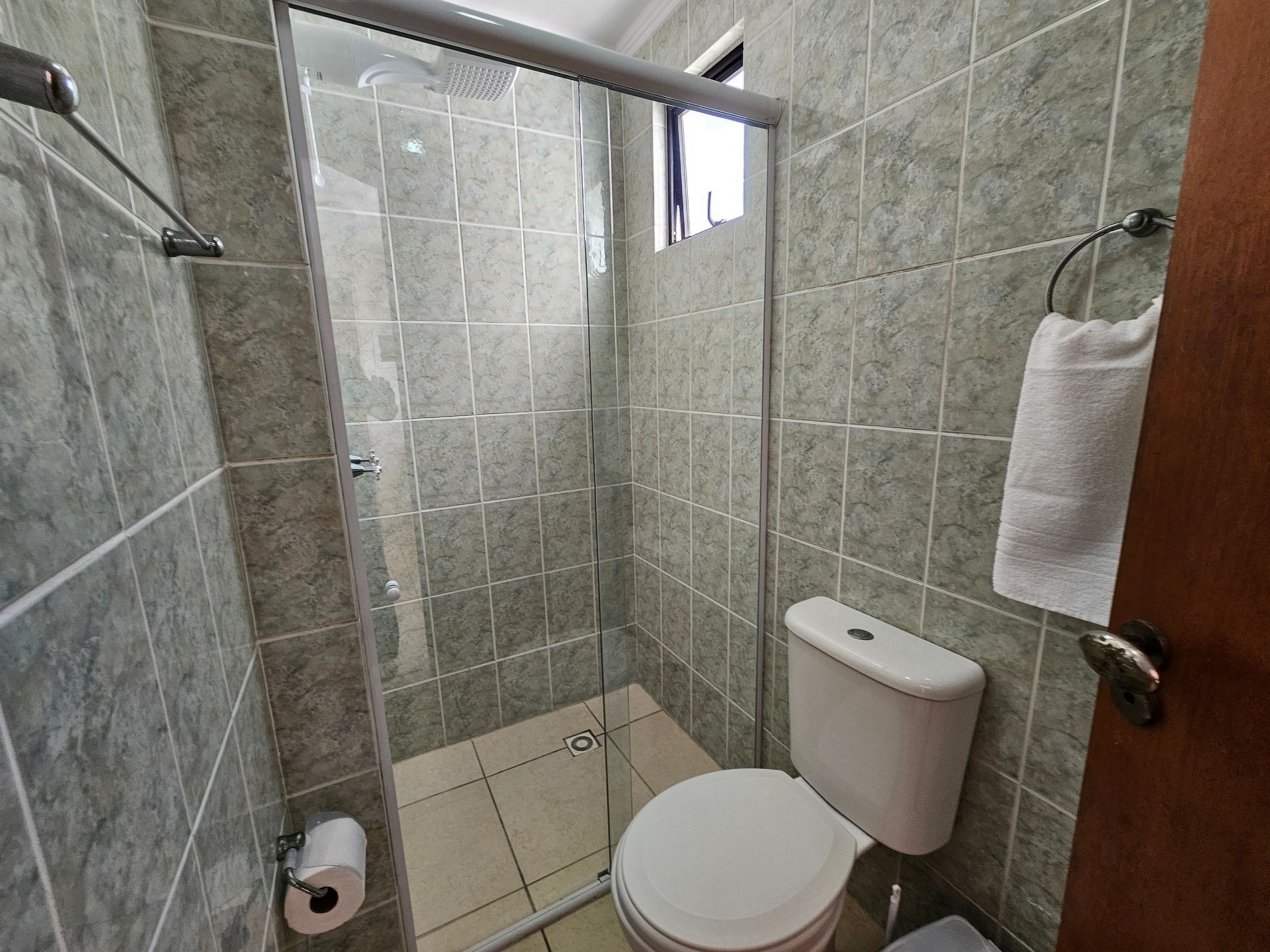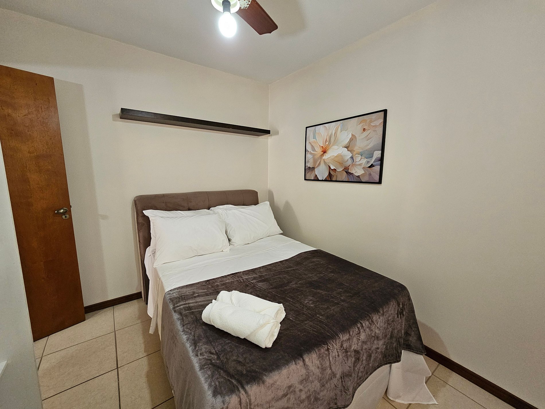 - 1 Quarto com cama de casal, armário, ventilador de teto e ar-condicionado;