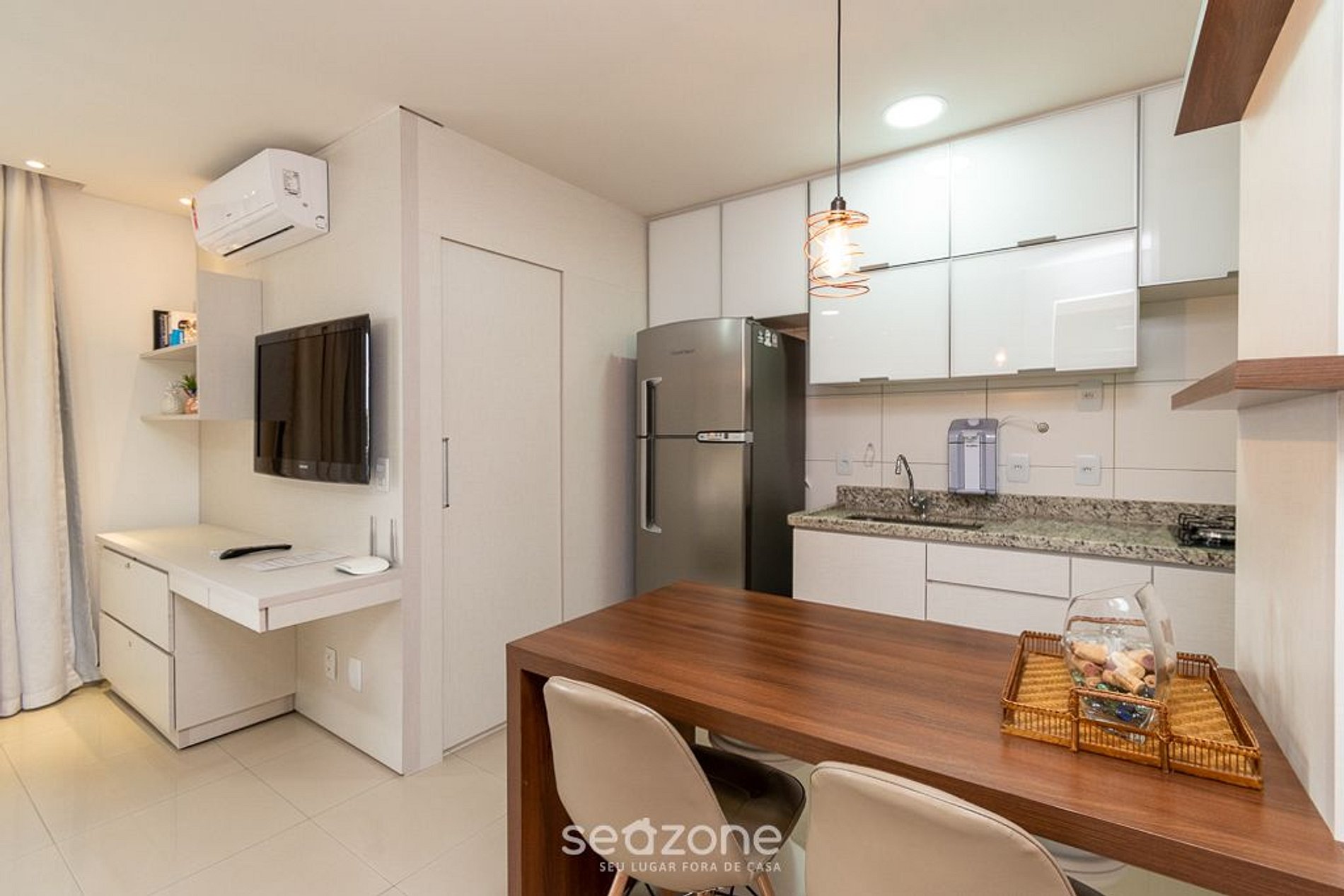 Tenha uma estadia completa neste flat moderno em Goiânia, Setor Bueno. Cozinha equipada, TV, Wi-Fi de alta velocidade e check-in sem chave e ar condicionado para você ter o máximo de conforto.