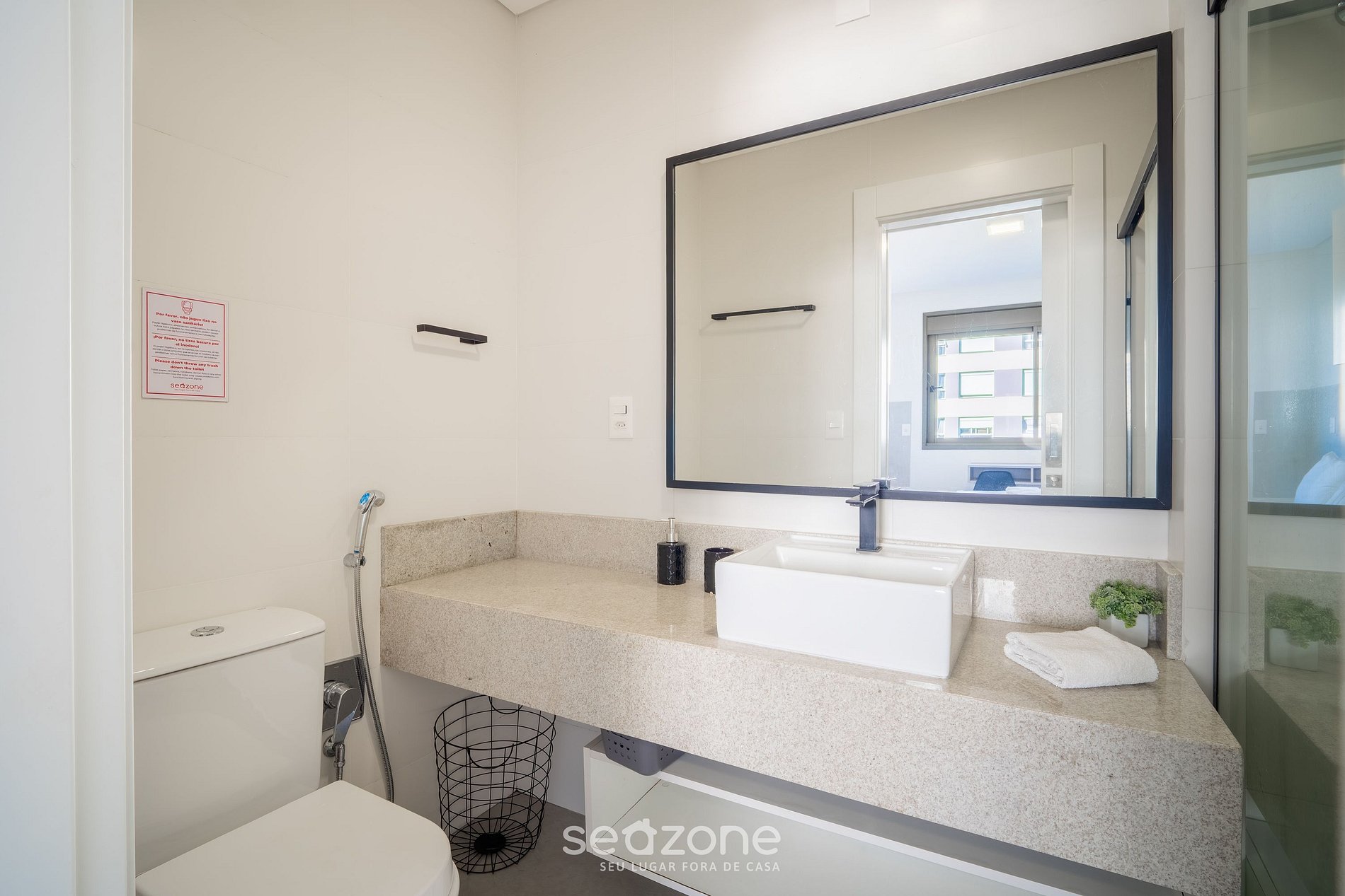 - Roupas de cama/banho e limpeza extras são solicitadas e pagas à parte, direto com a Seazone;