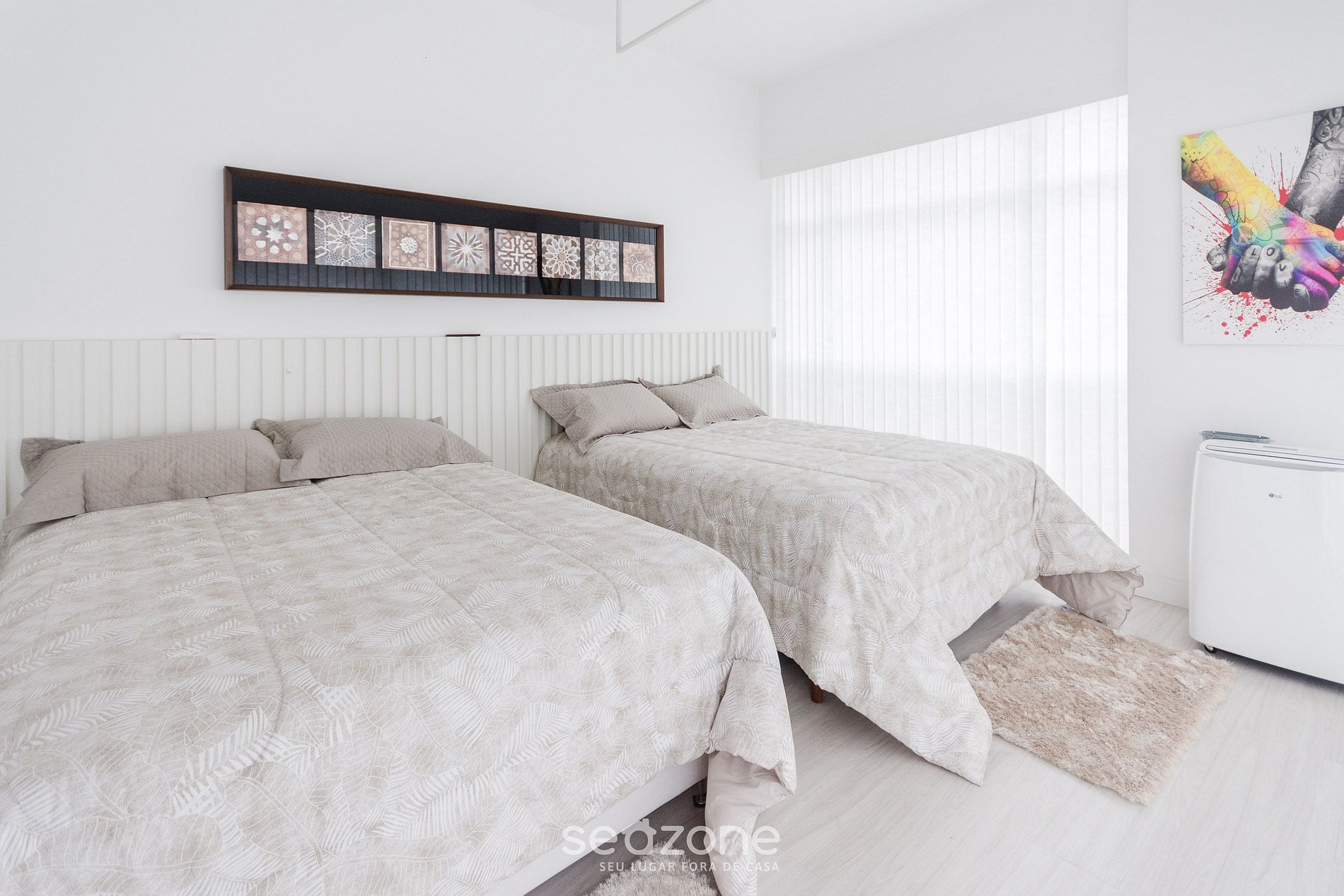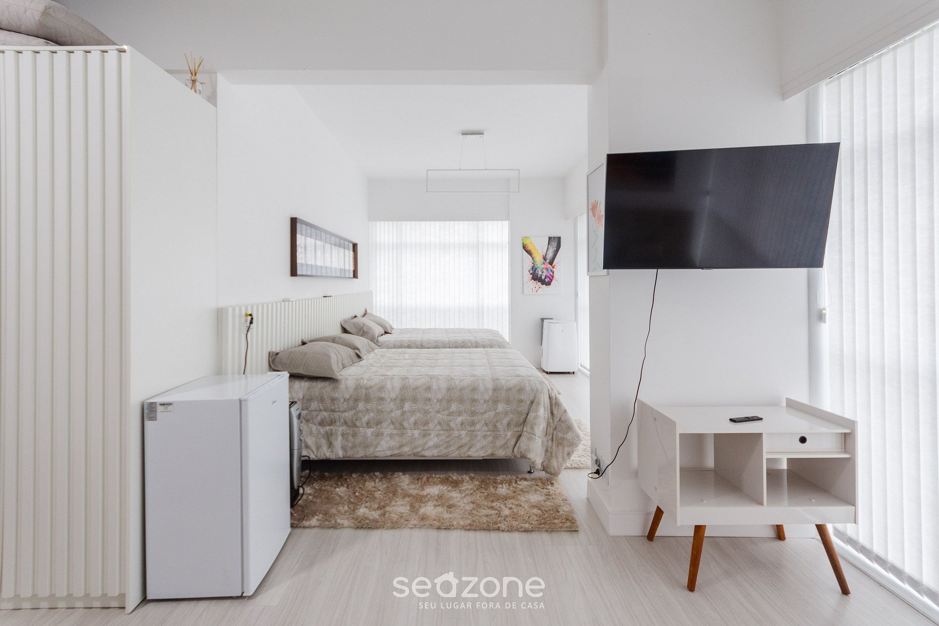 - Roupas de cama e banho de qualidade hoteleira (roupas de cama e toalhas extras são cobrados pela Seazone);
