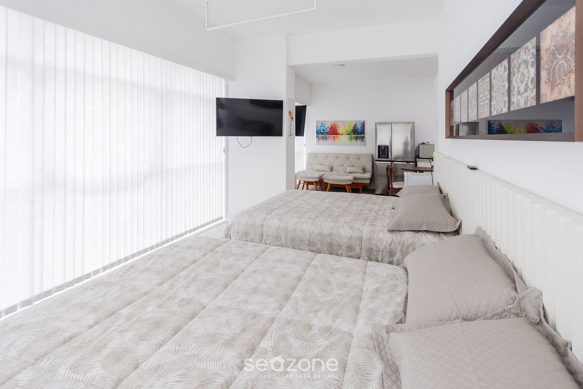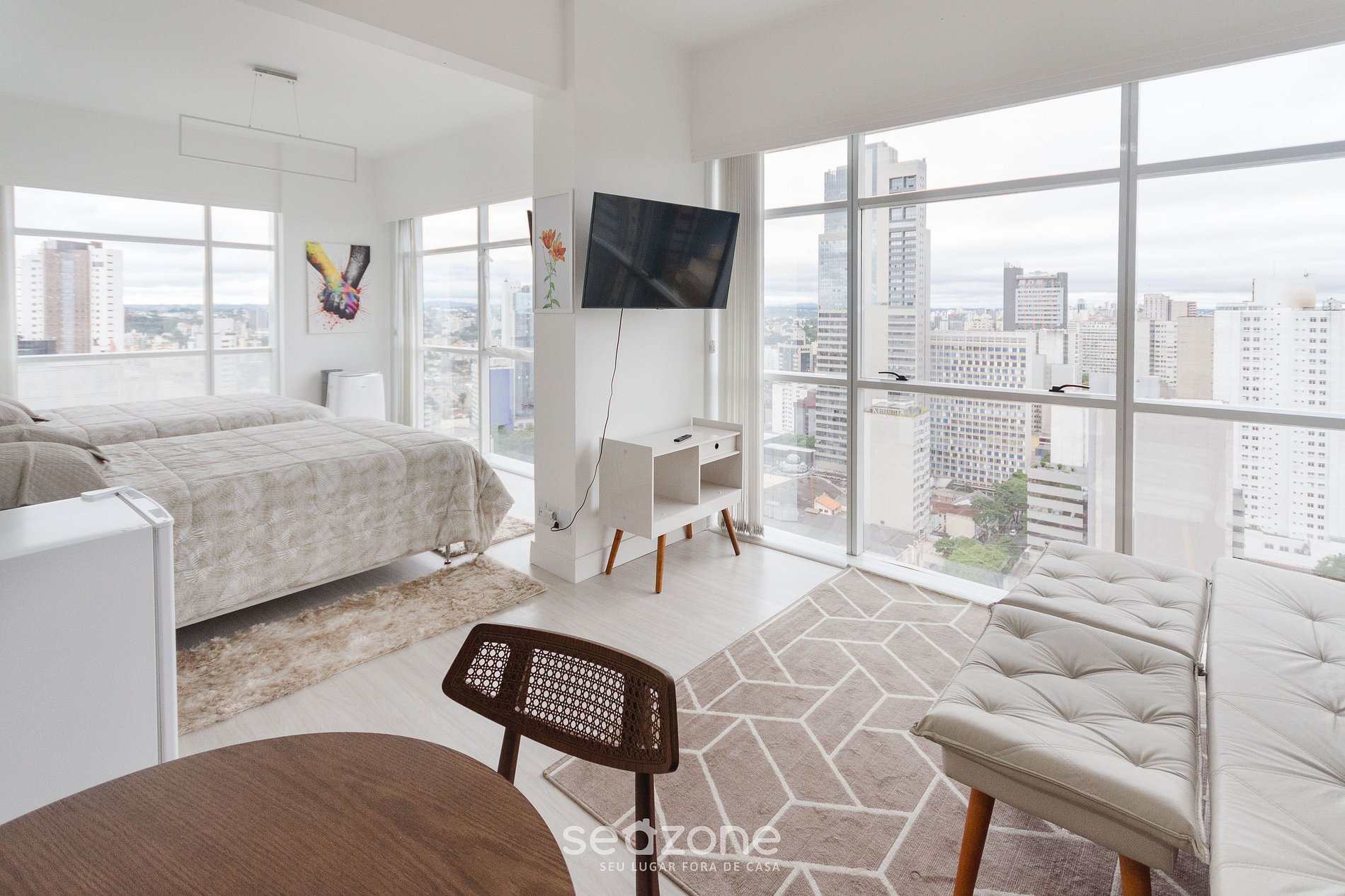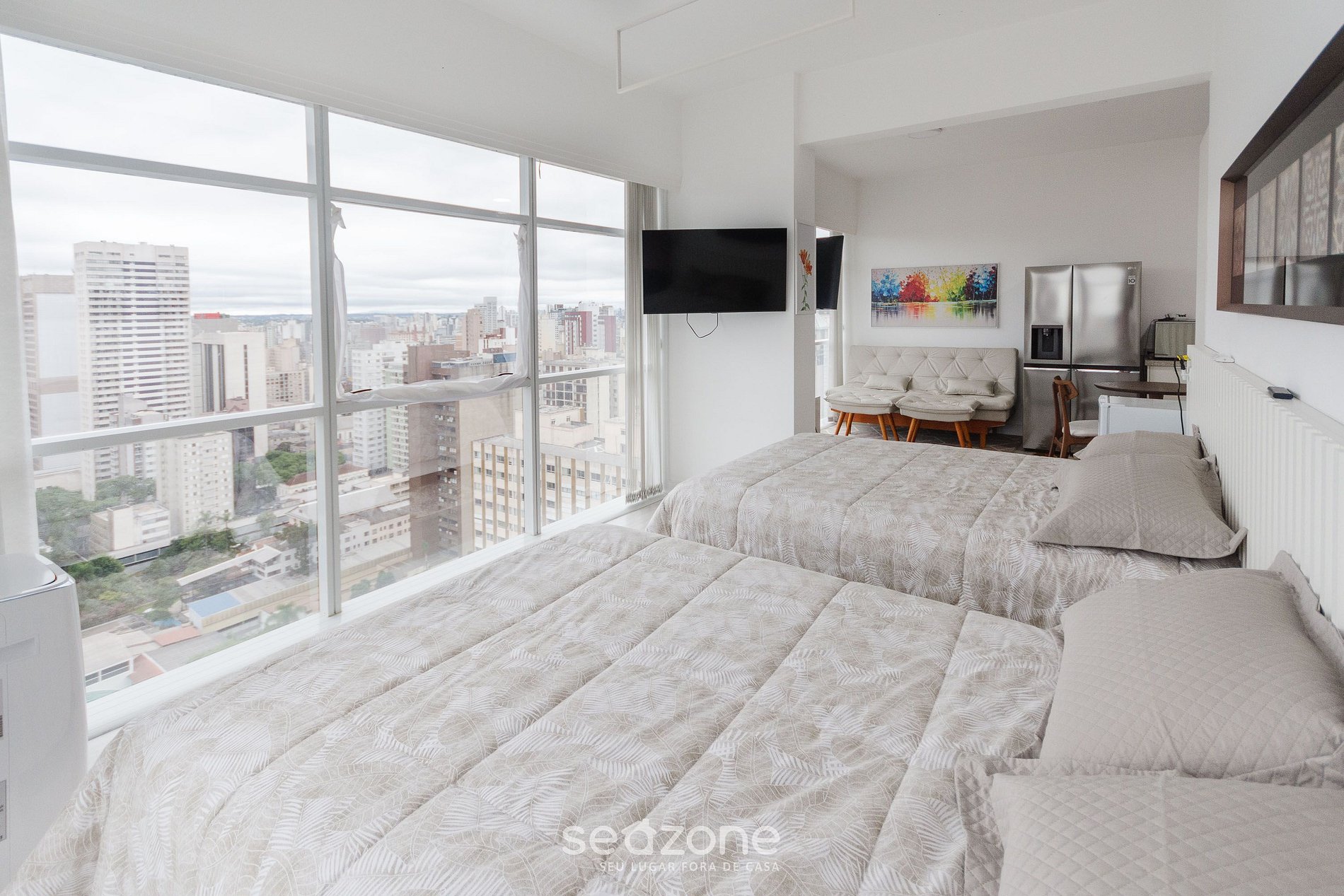 - Roupas de cama e banho de qualidade hoteleira (roupas de cama e toalhas extras são cobrados pela Seazone);