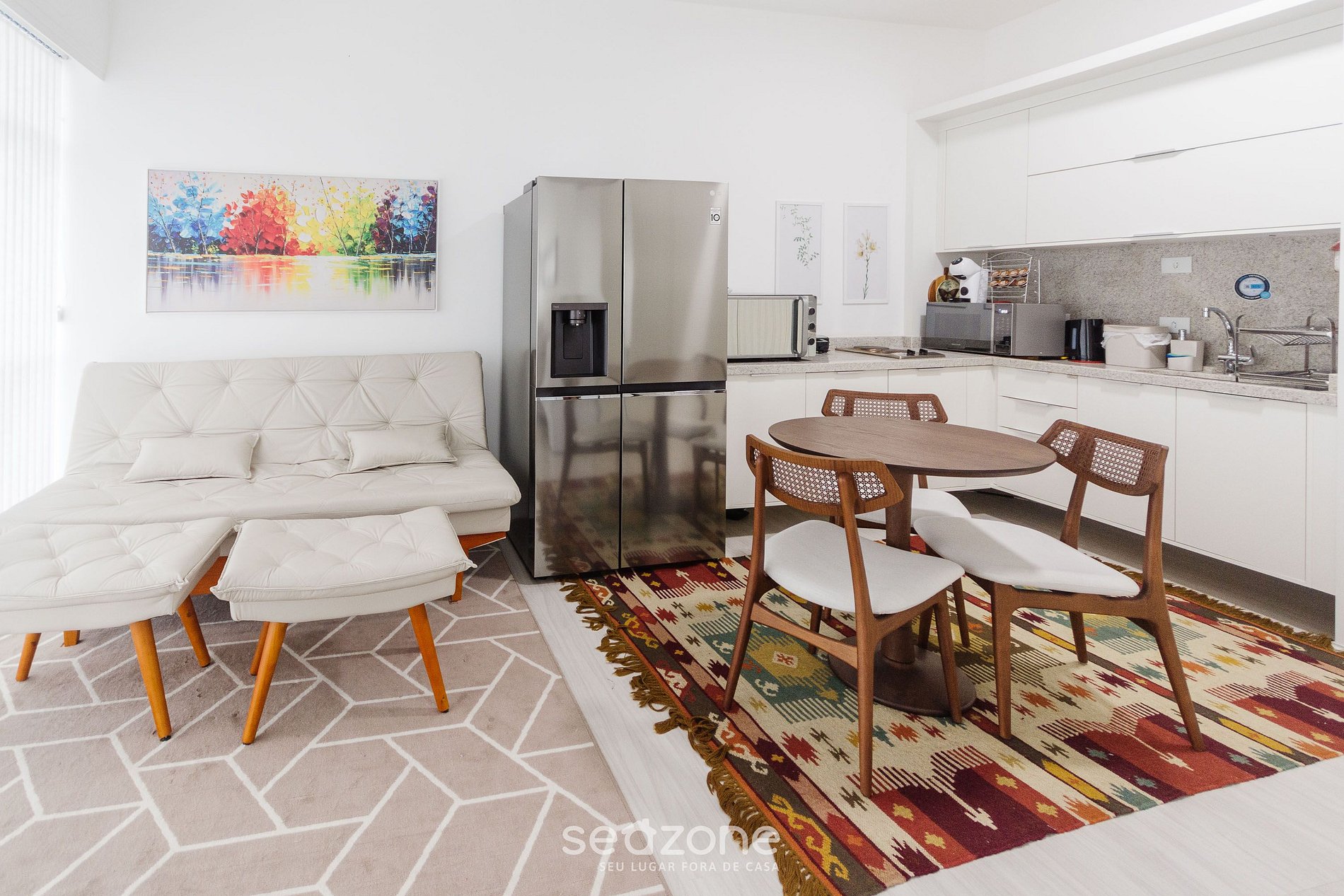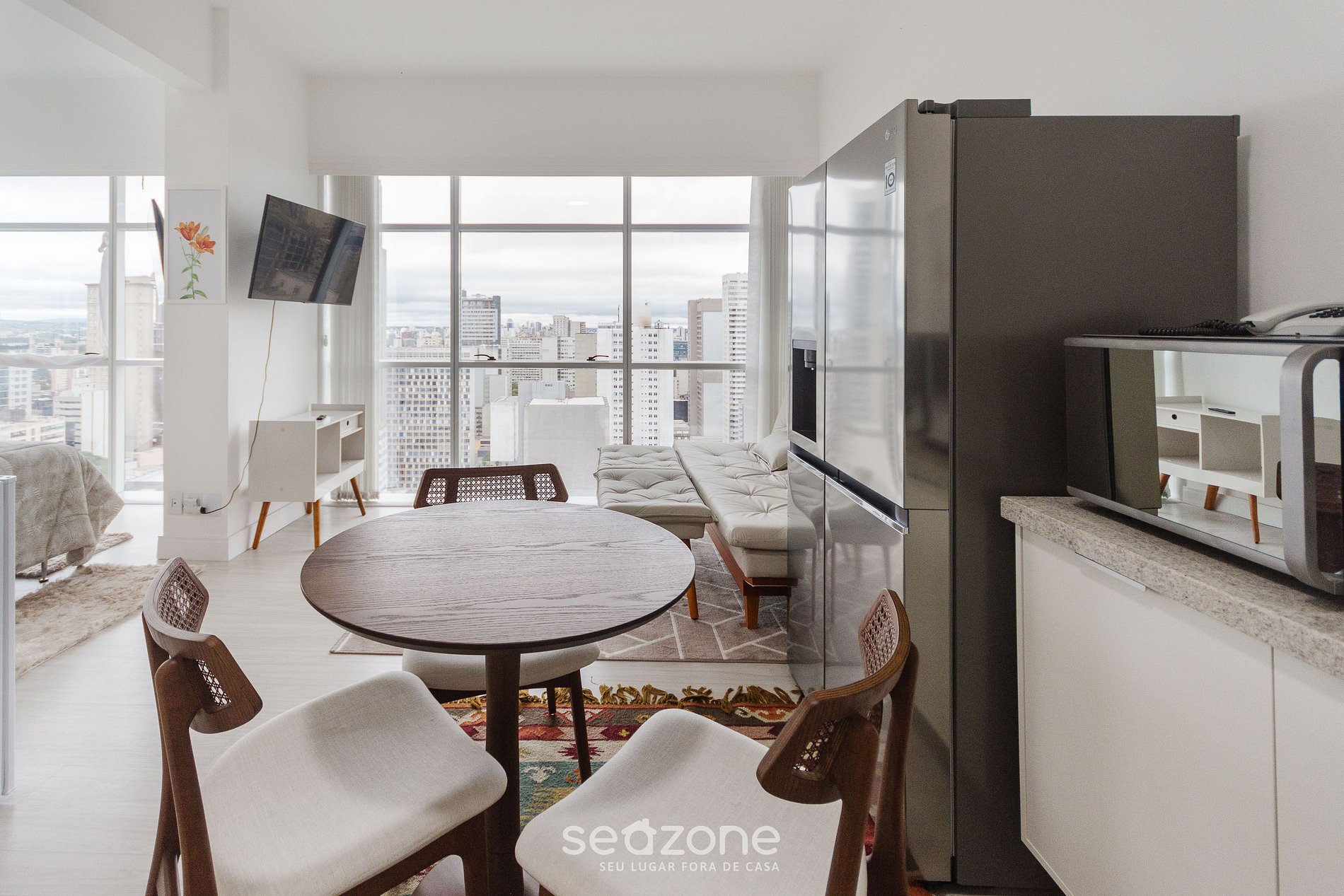 - Espaço para jantar com mesa e 3 cadeiras;