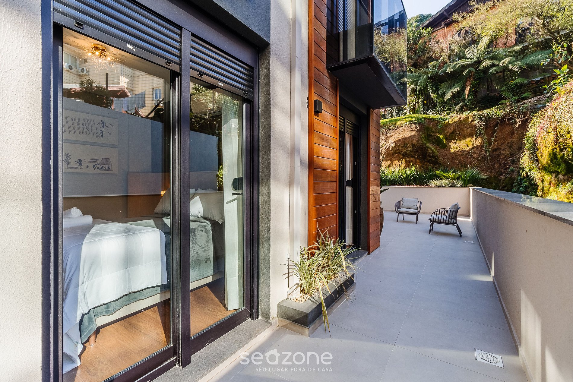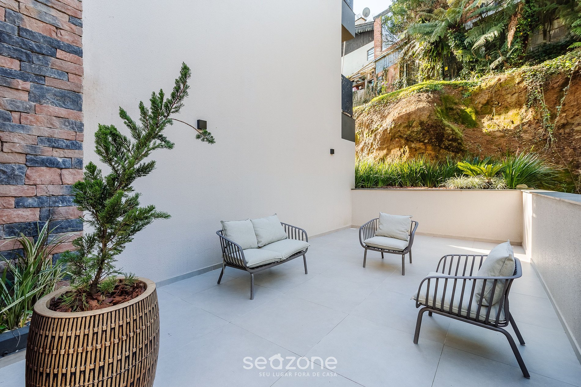 - Área externa privativa com bancos estofados;