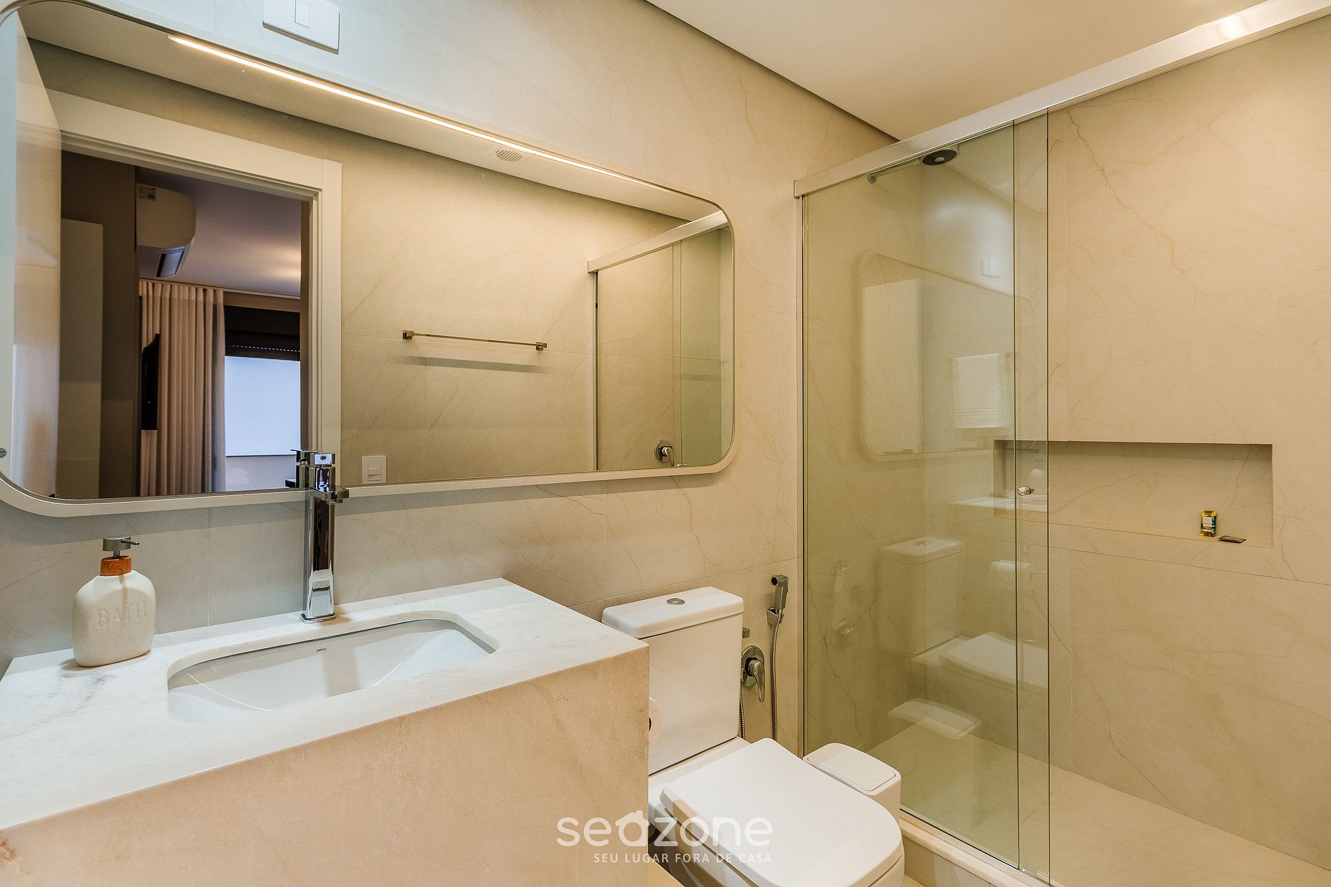 - Roupas de cama/banho e limpeza extras são solicitadas e pagas à parte, direto com a Seazone;