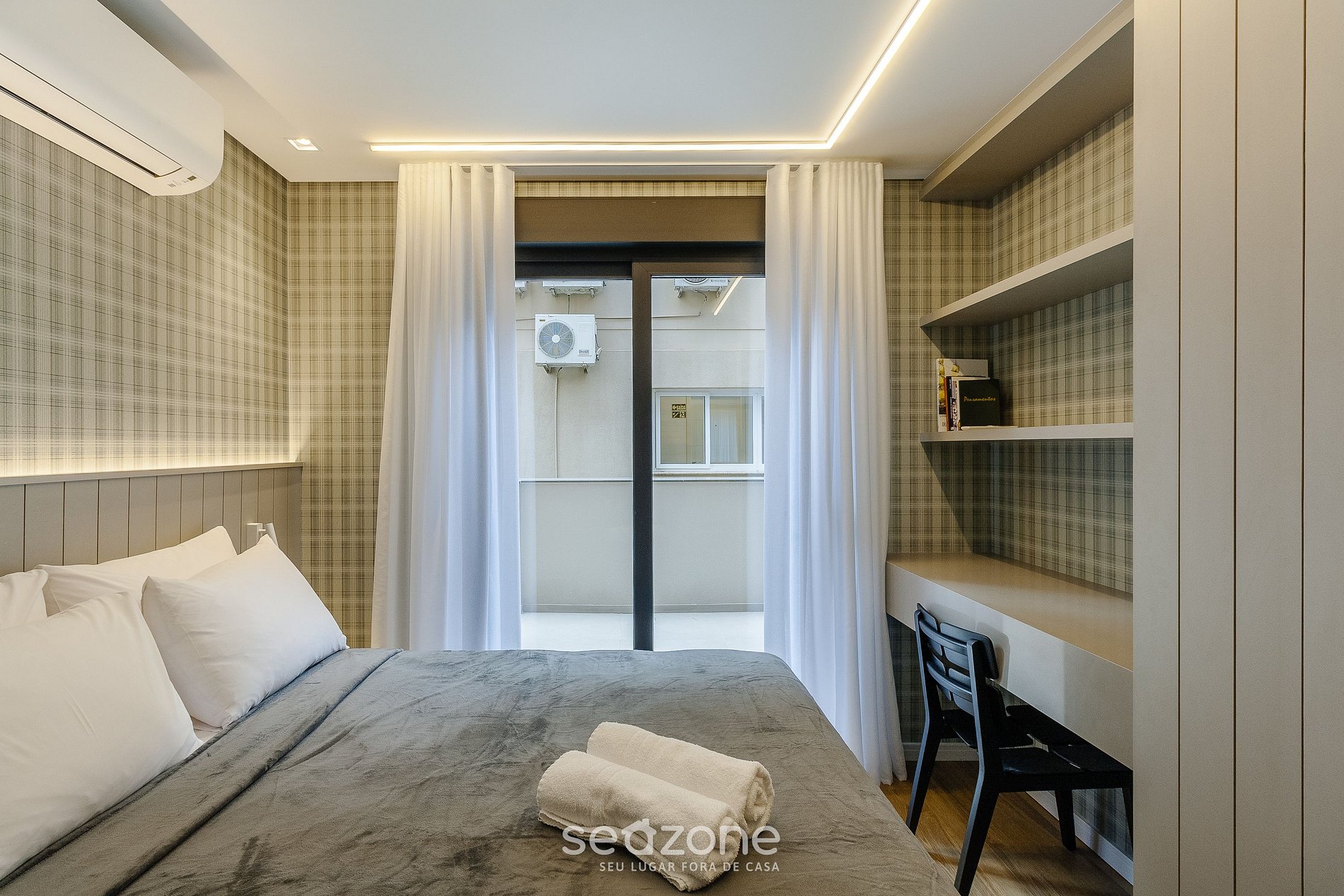 - Roupas de cama e banho de qualidade hoteleira (roupas de cama e toalhas extras são cobrados pela Seazone);