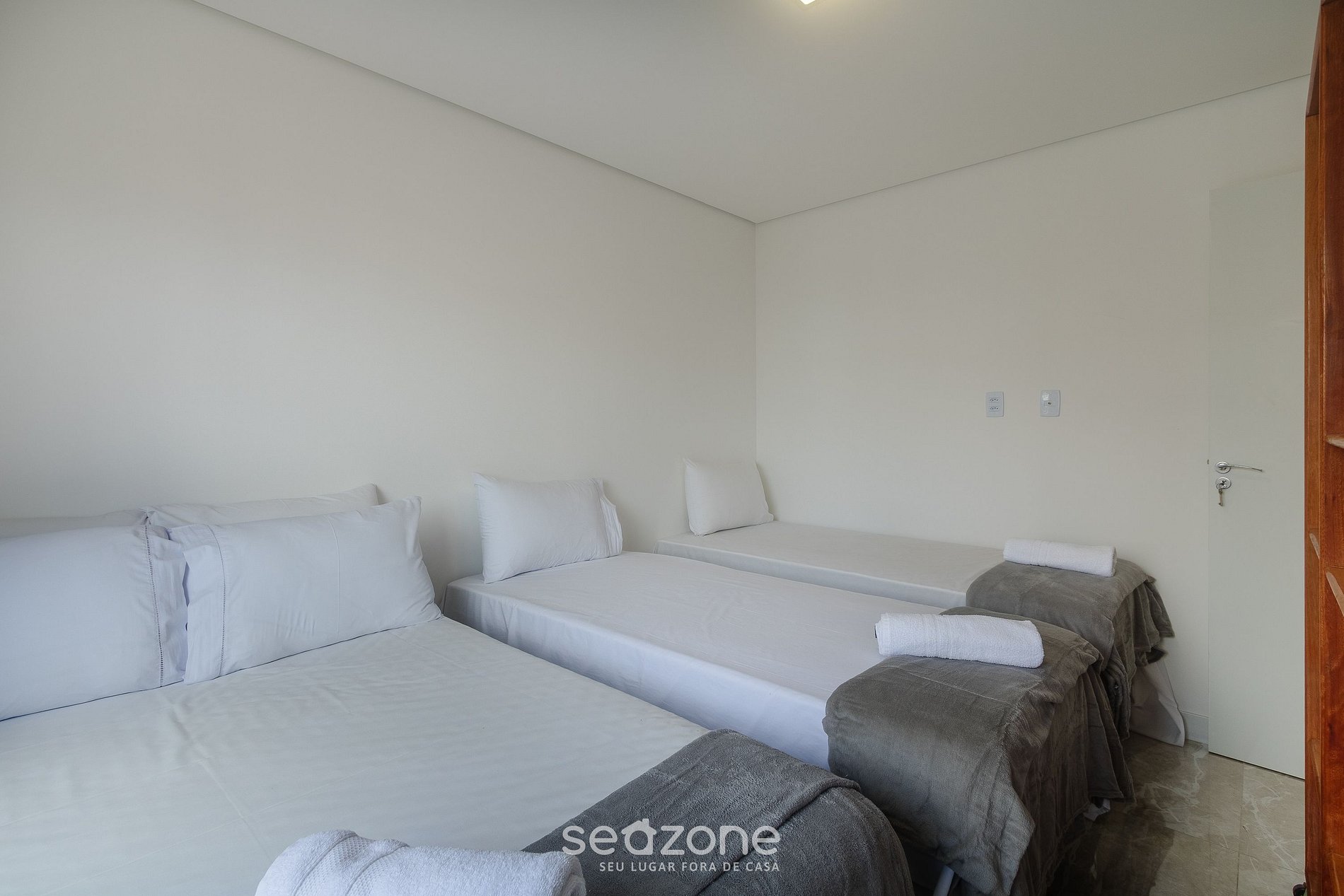 - Roupas de cama/banho e limpeza extras são solicitadas e pagas à parte, direto com a Seazone;