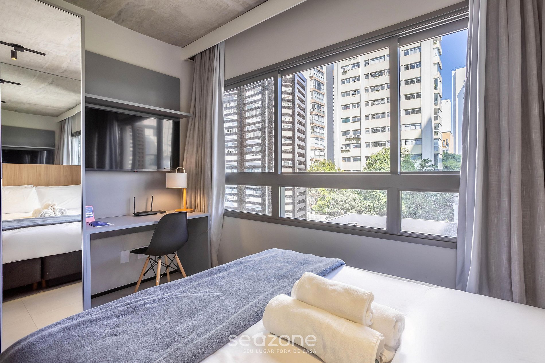 - Roupas de cama e banho de qualidade hoteleira (roupas de cama e toalhas extras são cobrados pela Seazone);