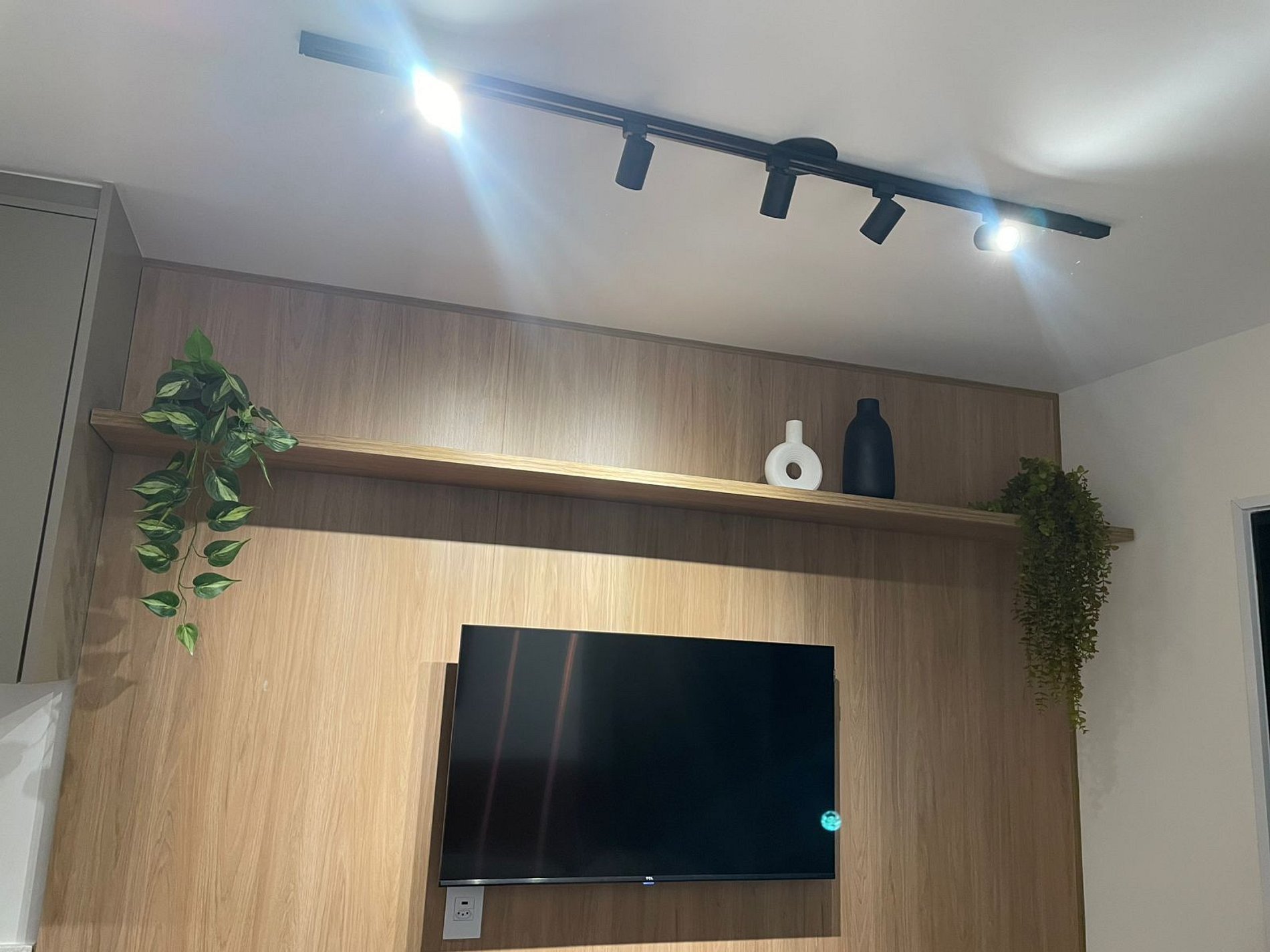 - Cama de casal, armário, smart TV e ar-condicionado;