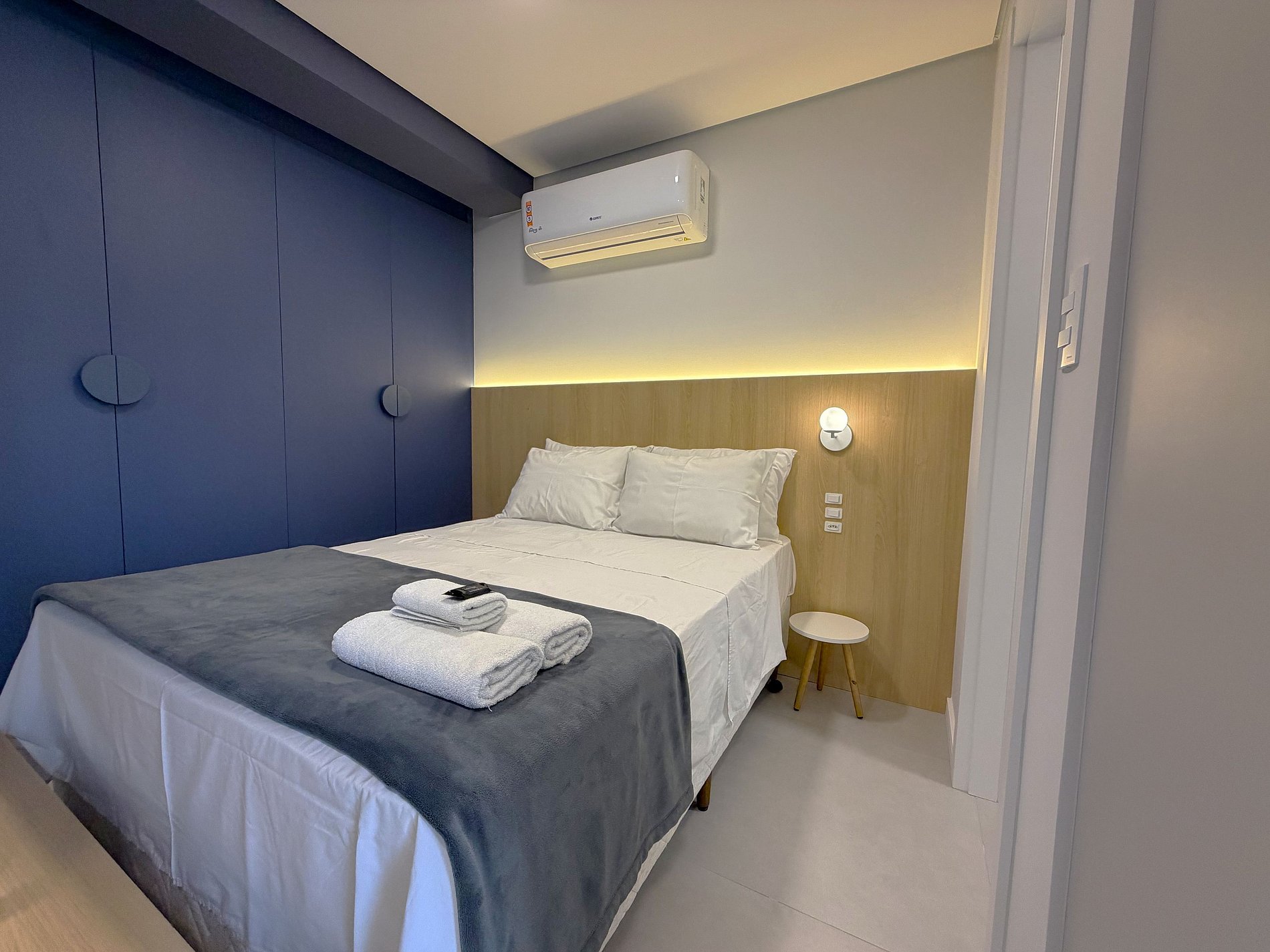 O ambiente contemporâneo oferece um ambiente confortável e bem planejado, com cama de casal, sofá, Smart TV, ar-condicionado, cozinha completa e área de jantar com churrasqueira gourmet. O prédio oferece rooftop com piscina, academia e coworking. Localização estratégica, a poucos minutos da Rua XV, Museu da Cerveja, Vila Germânica e da área central da Oktoberfest.