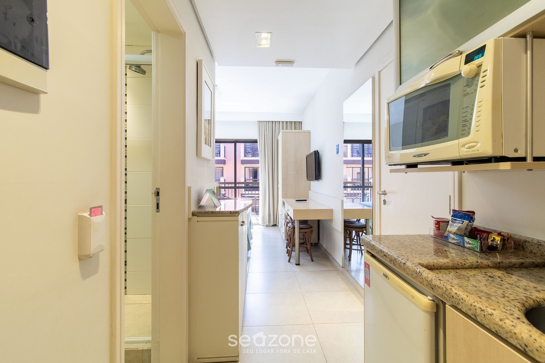 Apartamento com localização perfeita para solteiros ou casais que gostam de curtir o movimento de bares e restaurantes de Jurerê Internacional sem precisar andar muito.