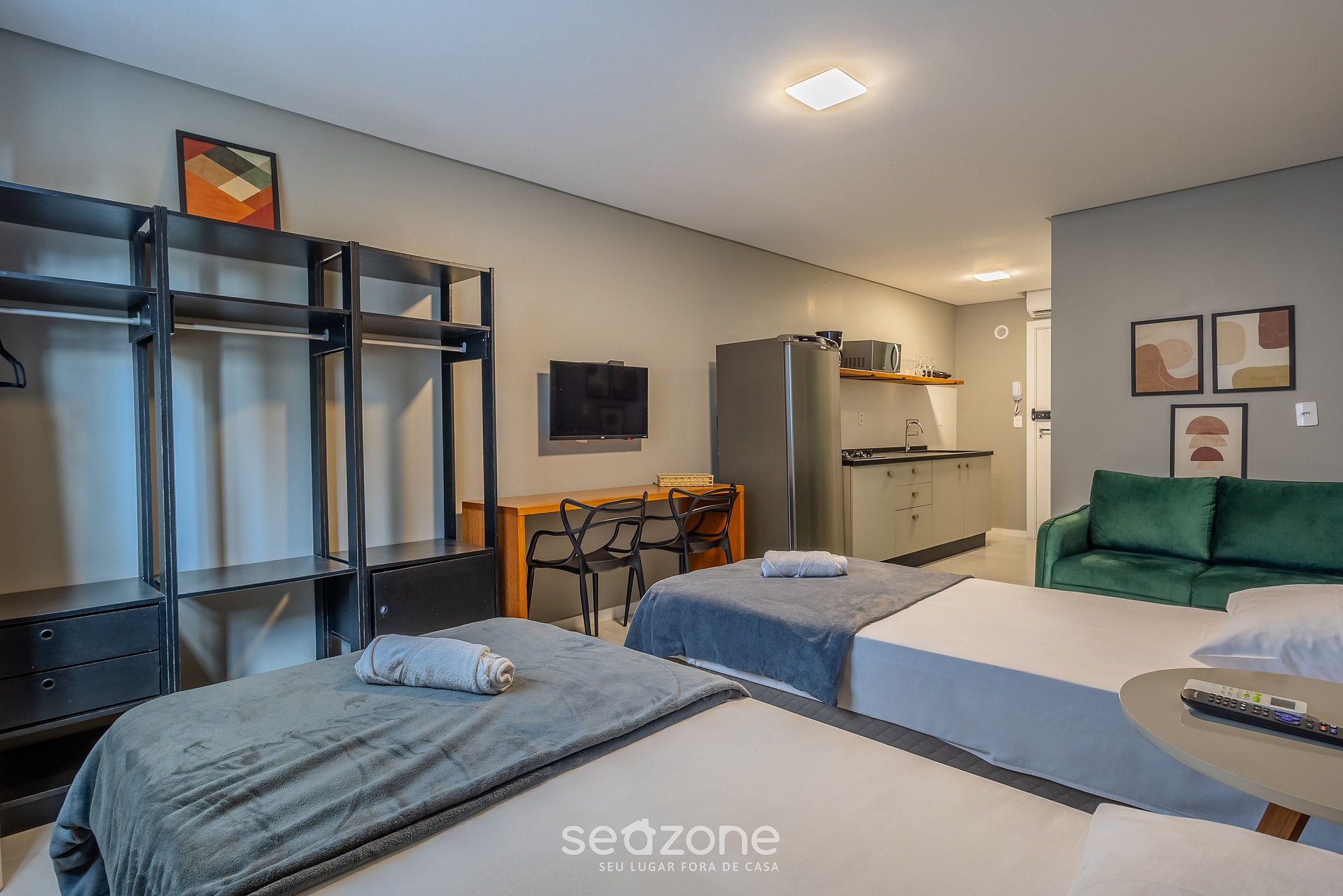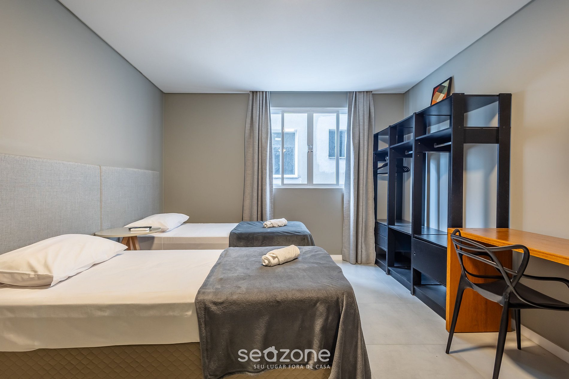 - Roupas de cama e banho de qualidade hoteleira (roupas de cama e toalhas extras são cobrados pela Seazone);