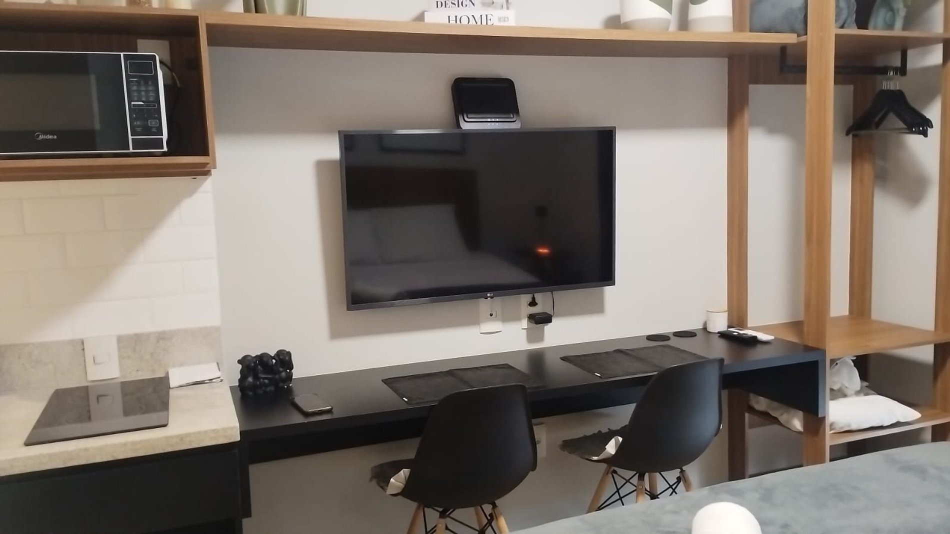 - Cama queen, armário, smart TV e ar-condicionado