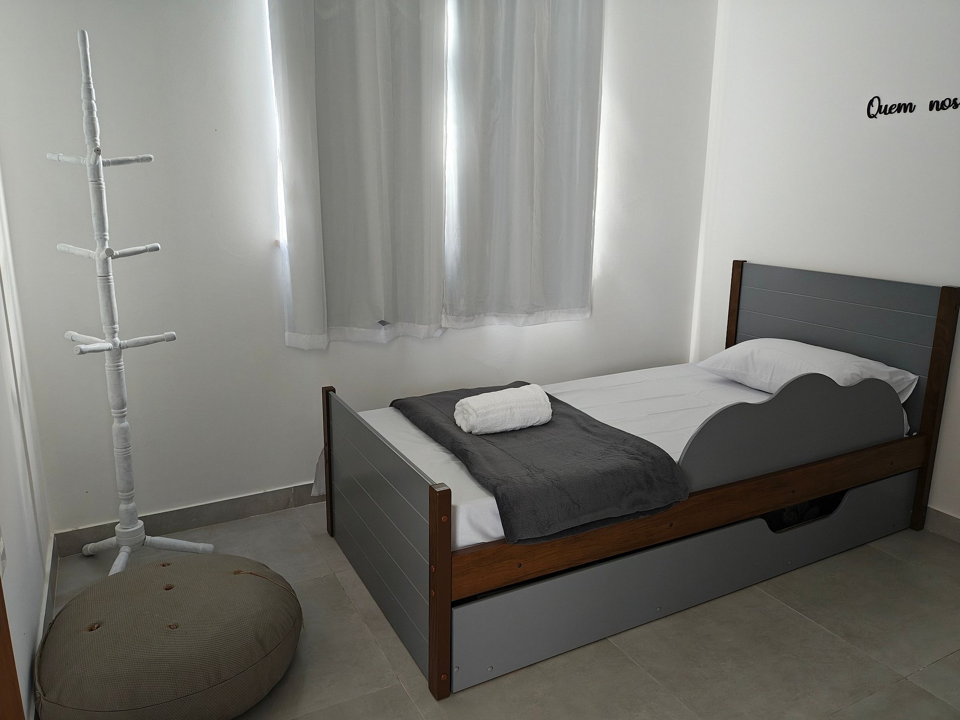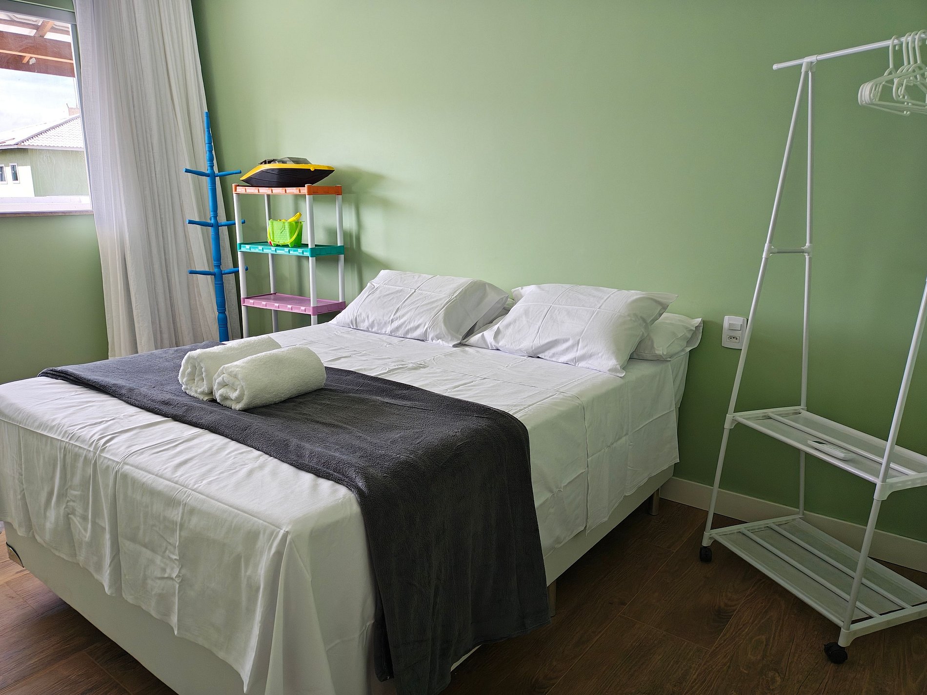 - 1 Quarto com cama de solteiro, cama auxiliar de solteiro, arara para roupas e ar-condicionado (casa de hóspedes);