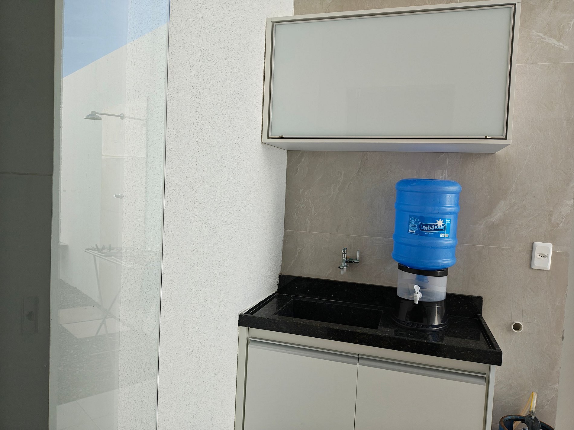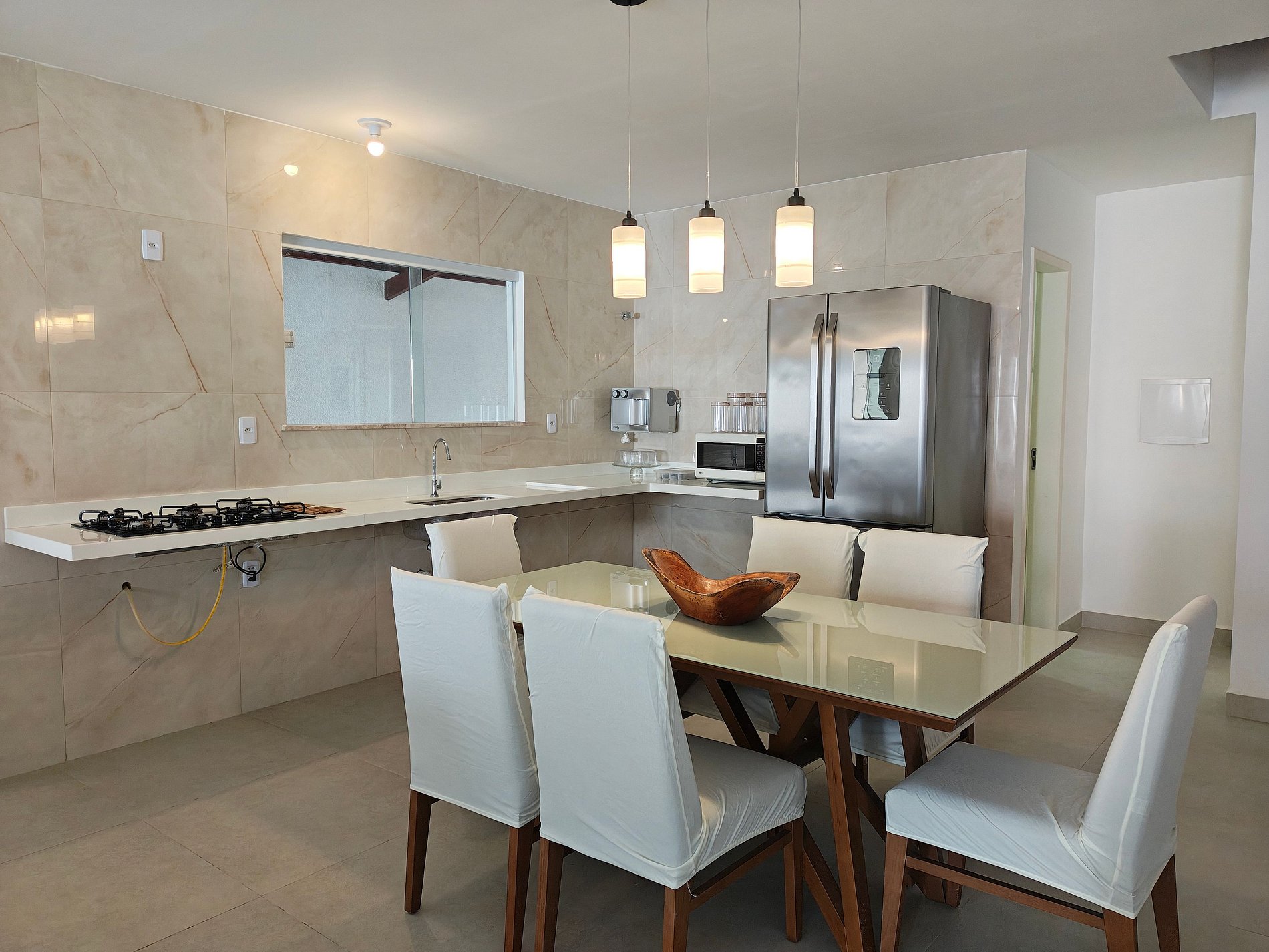 - Cozinha com geladeira, fogão e forno a gás, liquidificador, chaleira, sanduicheira, cafeteira elétrica e taça de vinho (casa de hóspedes);