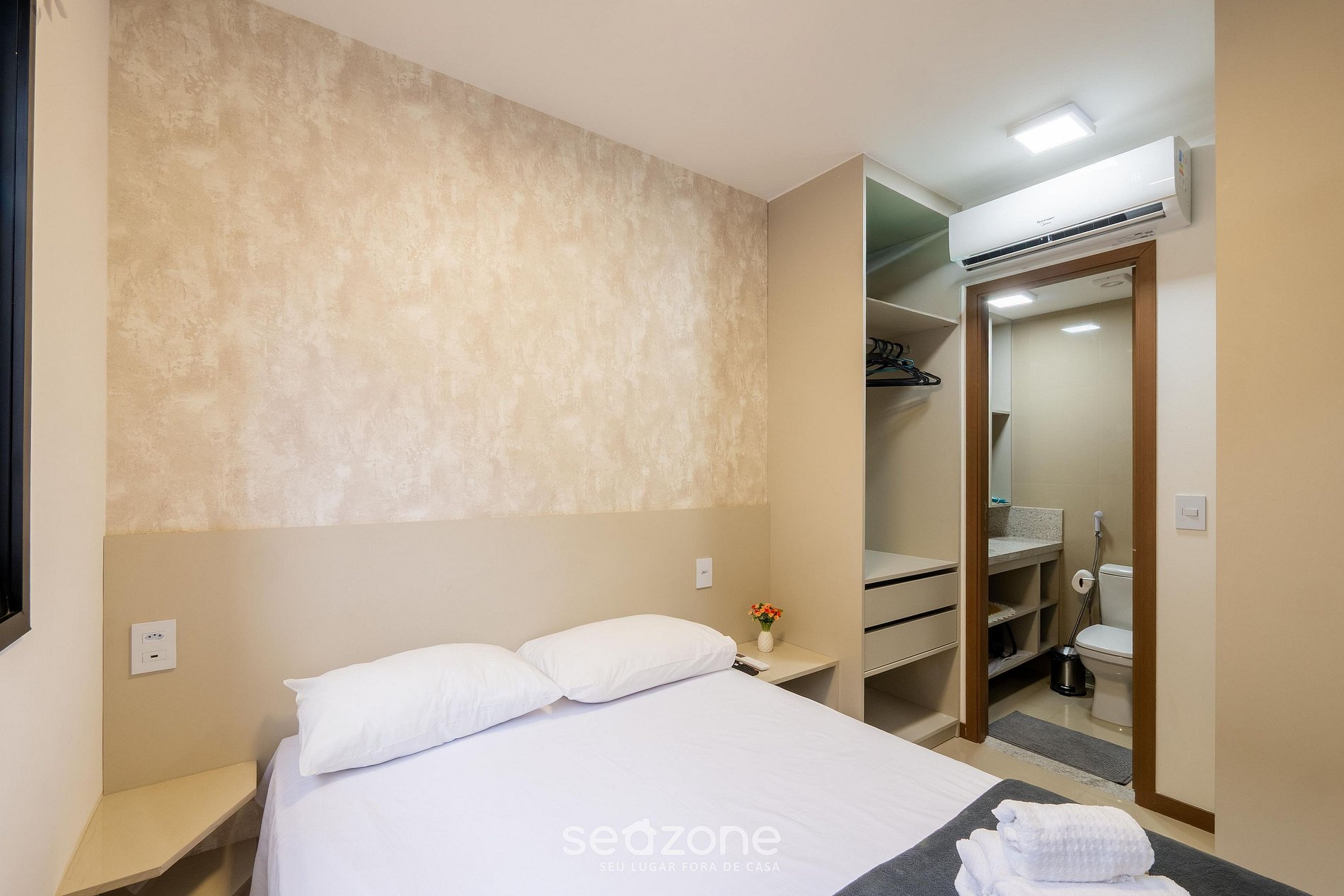 - Roupas de cama e banho de qualidade hoteleira (roupas de cama e toalhas extras são cobrados pela Seazone);