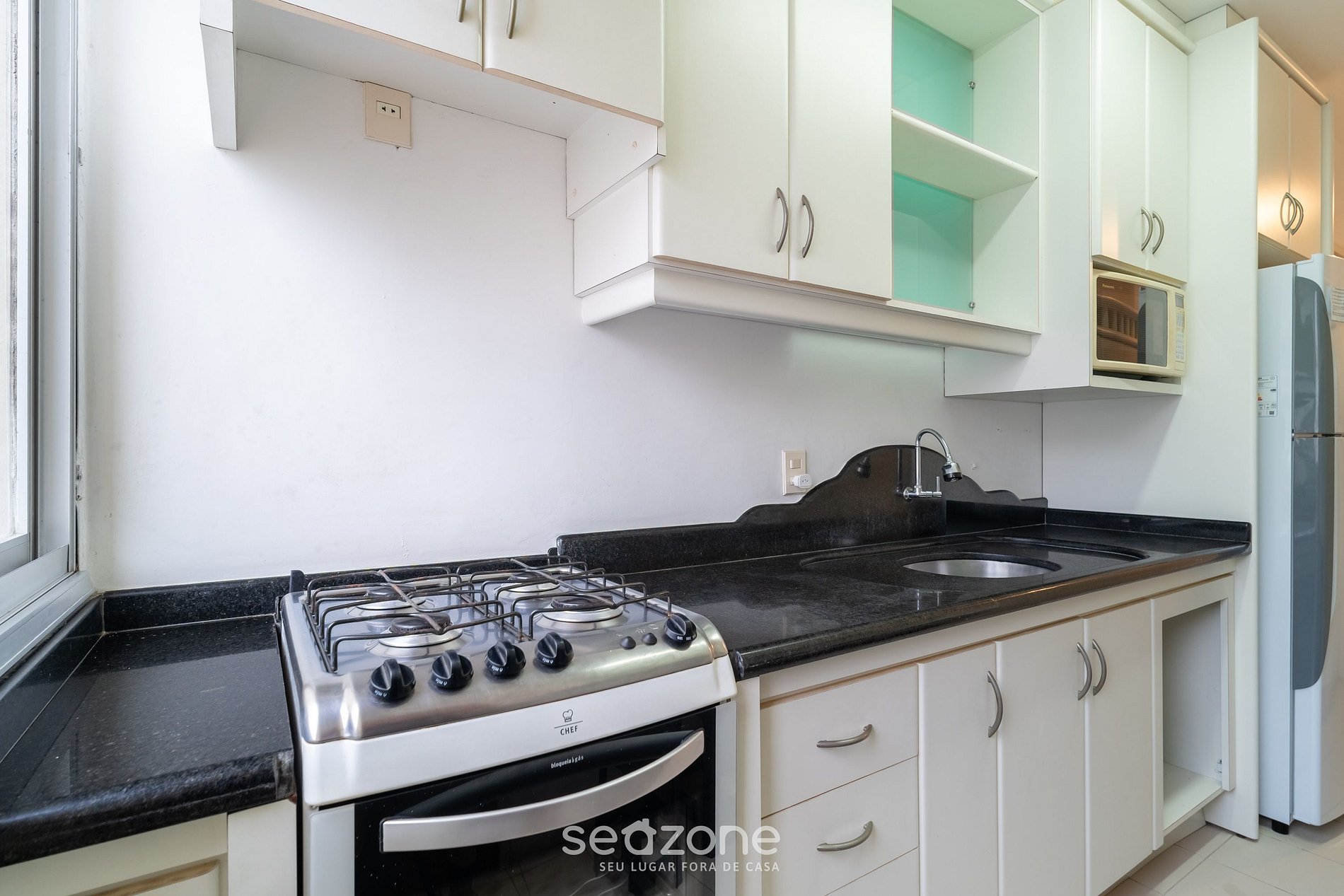 - Cozinha completa com geladeira, fogão e forno a gás, micro-ondas, sanduicheira, Kit café (suporte para filtro, garrafa térmica), chaleira elétrica, liquidificador, taças de vinho, panelas, louças e utensílios;