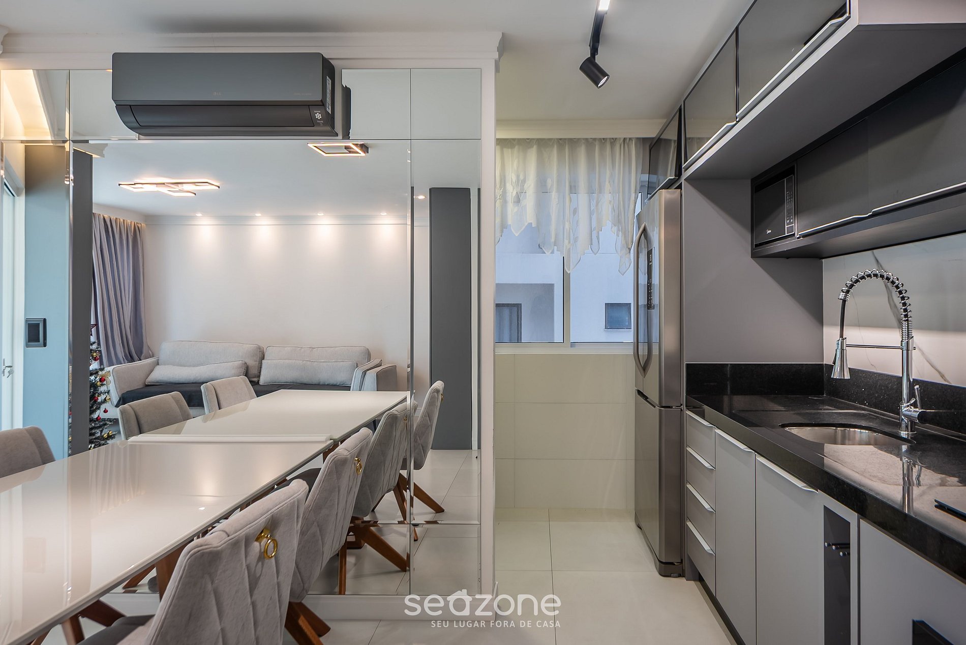 - Espaço para jantar com mesa e 4 cadeiras;