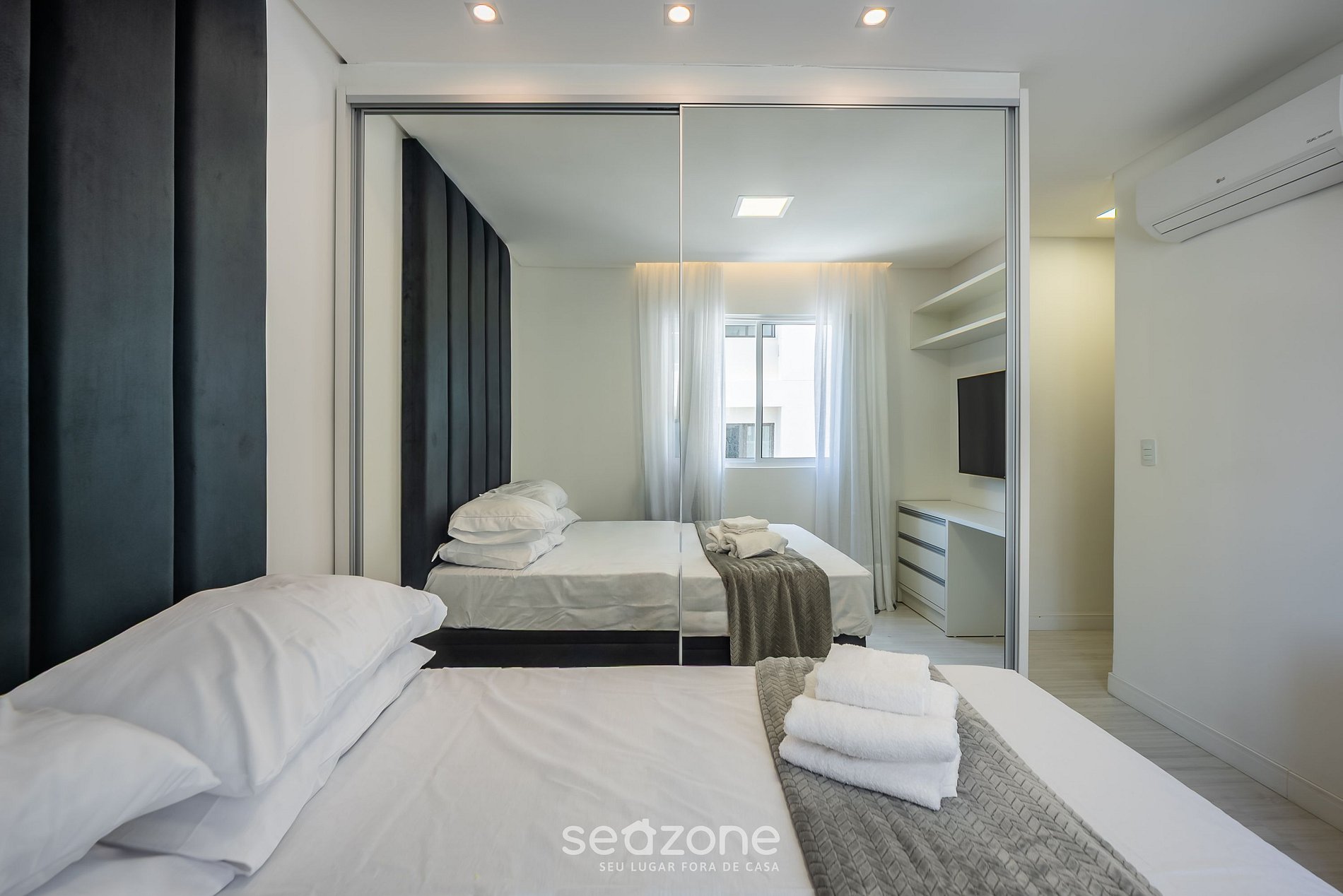 - Roupas de cama e banho de qualidade hoteleira (roupas de cama e toalhas extras são cobrados pela Seazone);