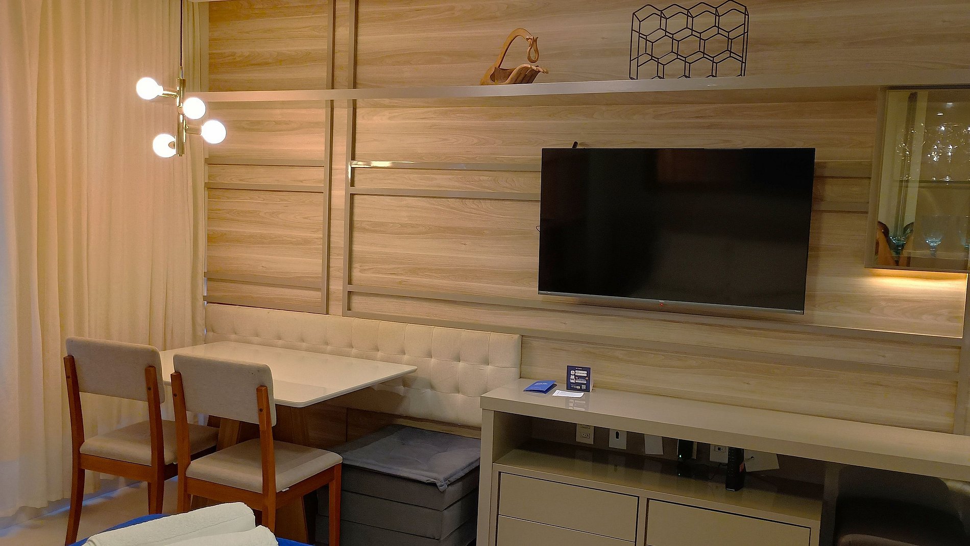 - Espaço para jantar com mesa e cadeiras;