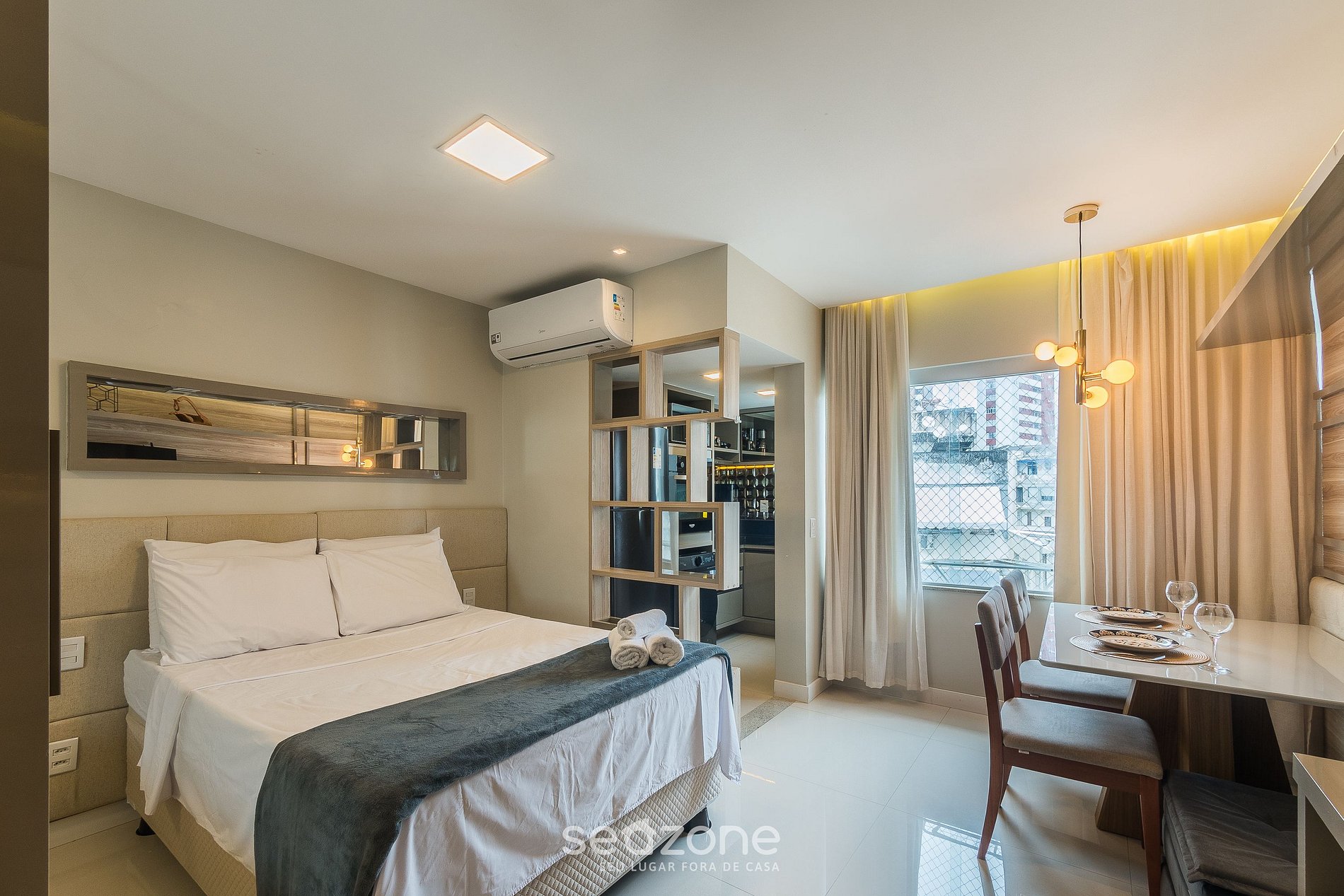 - Roupas de cama e banho de qualidade hoteleira (roupas de cama e toalhas extras são cobrados pela Seazone);
